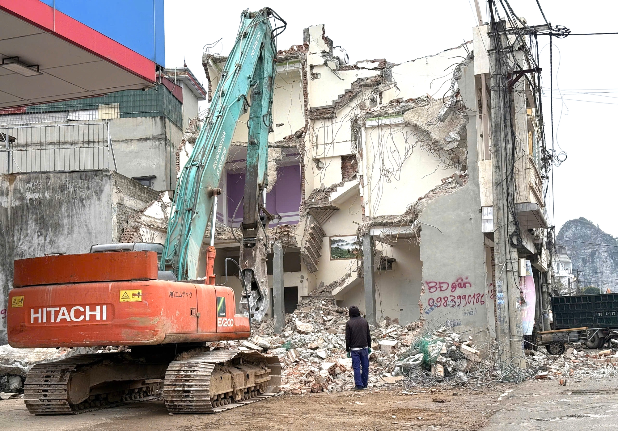 Các nhà thầu đang tiến hành tháo dỡ các công trình dọc tuyến đại lộ Lê Lợi.