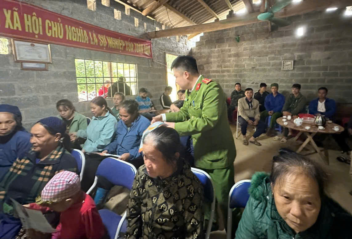 Công an xã Đông Khê tuyên truyền người dân xóm Nà Pi kê khai, bổ sung dữ liệu phương tiện và giấy phép lái xe.