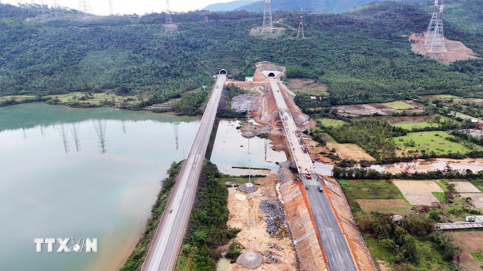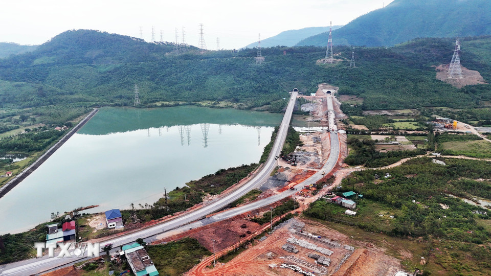 Hạng mục đường dẫn vào hầm Đèo Ngang đang được hoàn thiện những giai đoạn cuối để thảm nhựa. (Ảnh: Hữu Quyết/TTXVN)