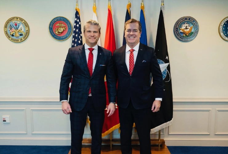 Bộ trưởng Quốc phòng Mỹ Pete Hegseth (trái) gặp ông Dan Rice ngày 19/1/2026. Ảnh: Dan Rice/Kyiv Post