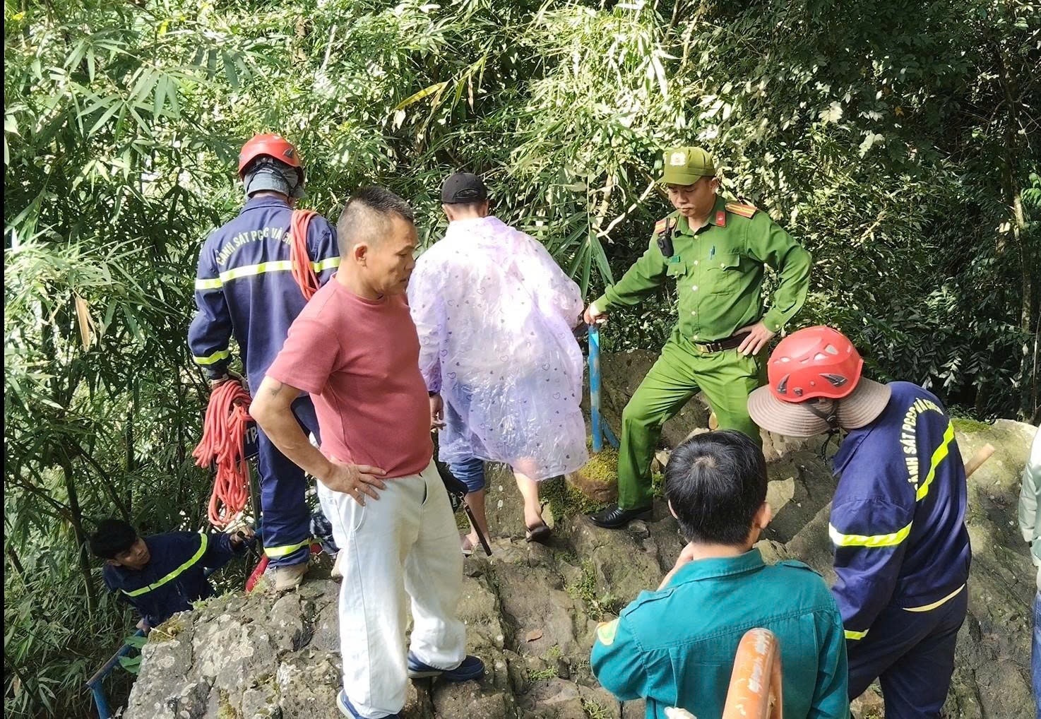 Lực lượng chức năng triển khai công tác tìm kiếm người phụ nữ nghi bị trôi xuống thác Voi