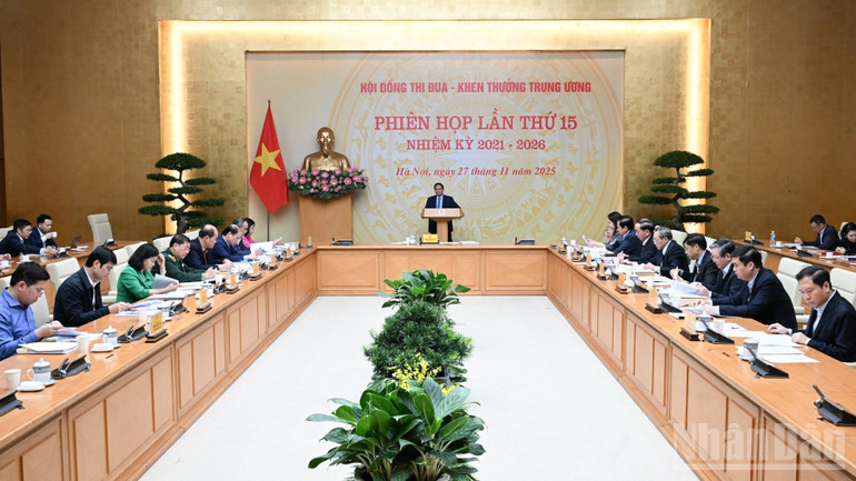 Thủ tướng Chính phủ Phạm Minh Chính chủ trì Phiên họp lần thứ 15 của Hội đồng Thi đua-Khen thưởng Trung ương. (Ảnh: Trần Hải)