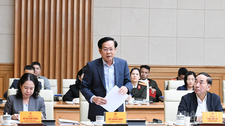 Bộ trưởng Nội vụ Đỗ Thanh Bình báo cáo tại Phiên họp. (Ảnh: Trần Hải)