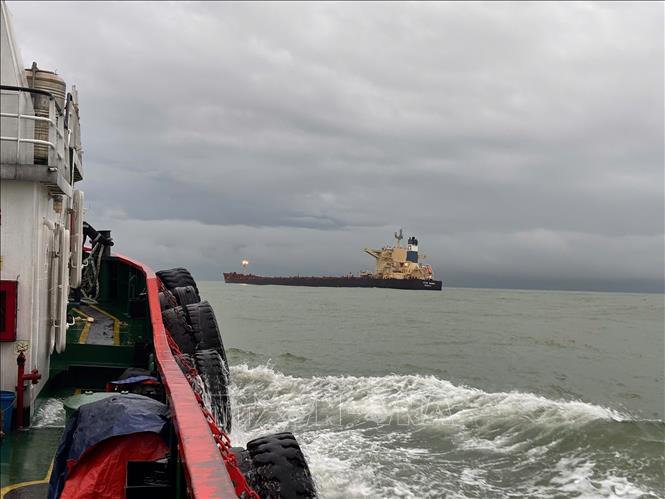 Sau đó, Đồn Biên phòng Cửa khẩu cảng Dung Quất phối hợp cùng Cảng vụ hàng hải Quảng Ngãi cấp phép cho các phương tiện đến hỗ trợ tàu hàng bơm nước, ứng cứu.