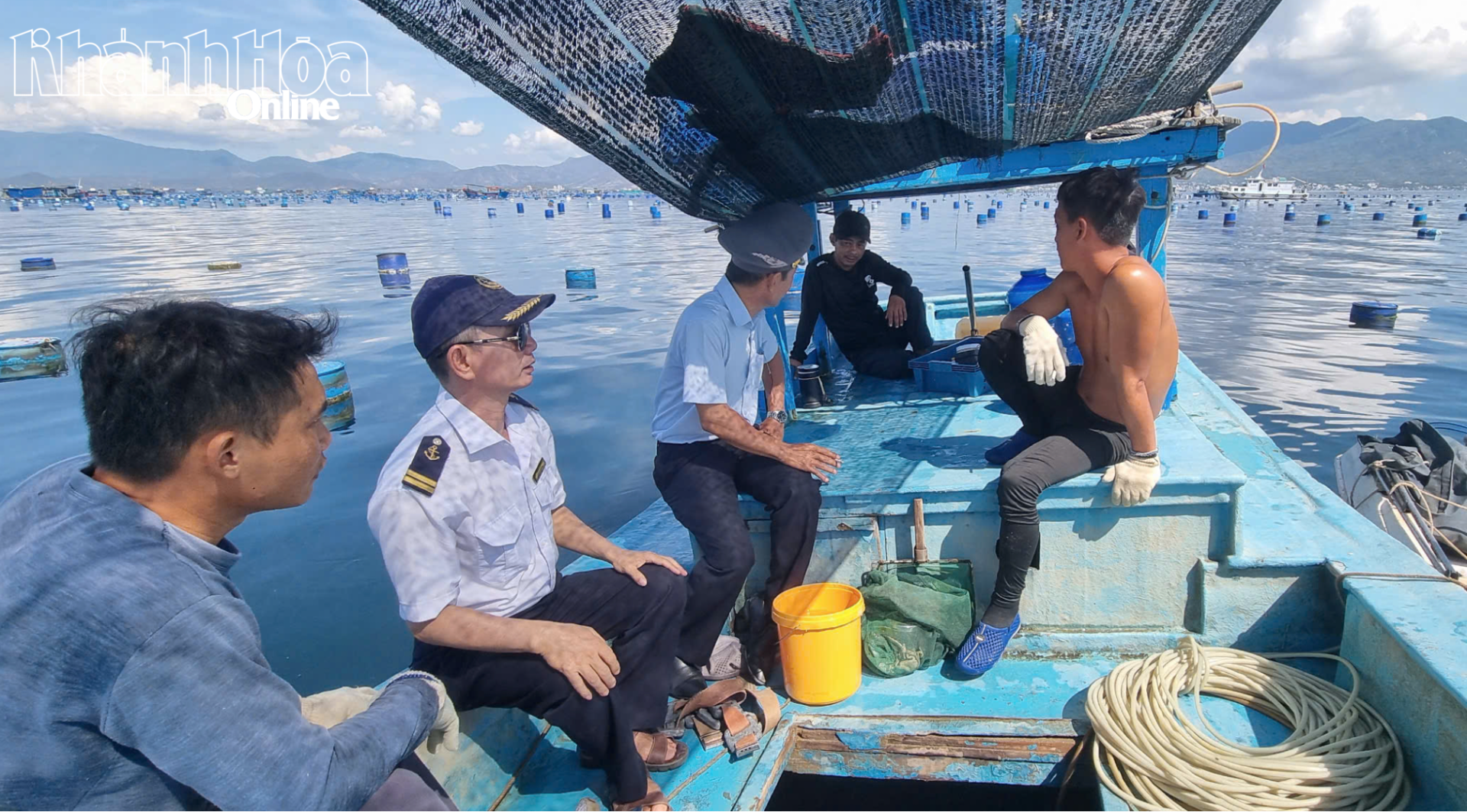 Cán bộ Cảng vụ Hàng hải Nha Trang vận động người dân nuôi trồng thủy sản trên vịnh Cam Ranh chấp hành quy định của pháp luật.