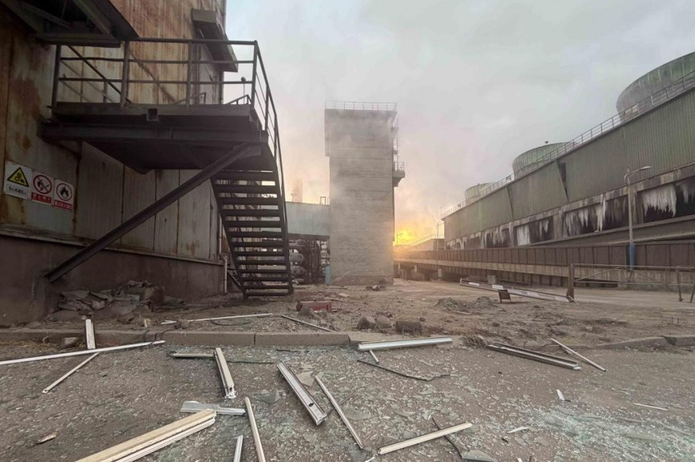 Một góc khuôn viên nhà máy thép sau khi vụ nổ xảy ra. Ảnh: Xinhua