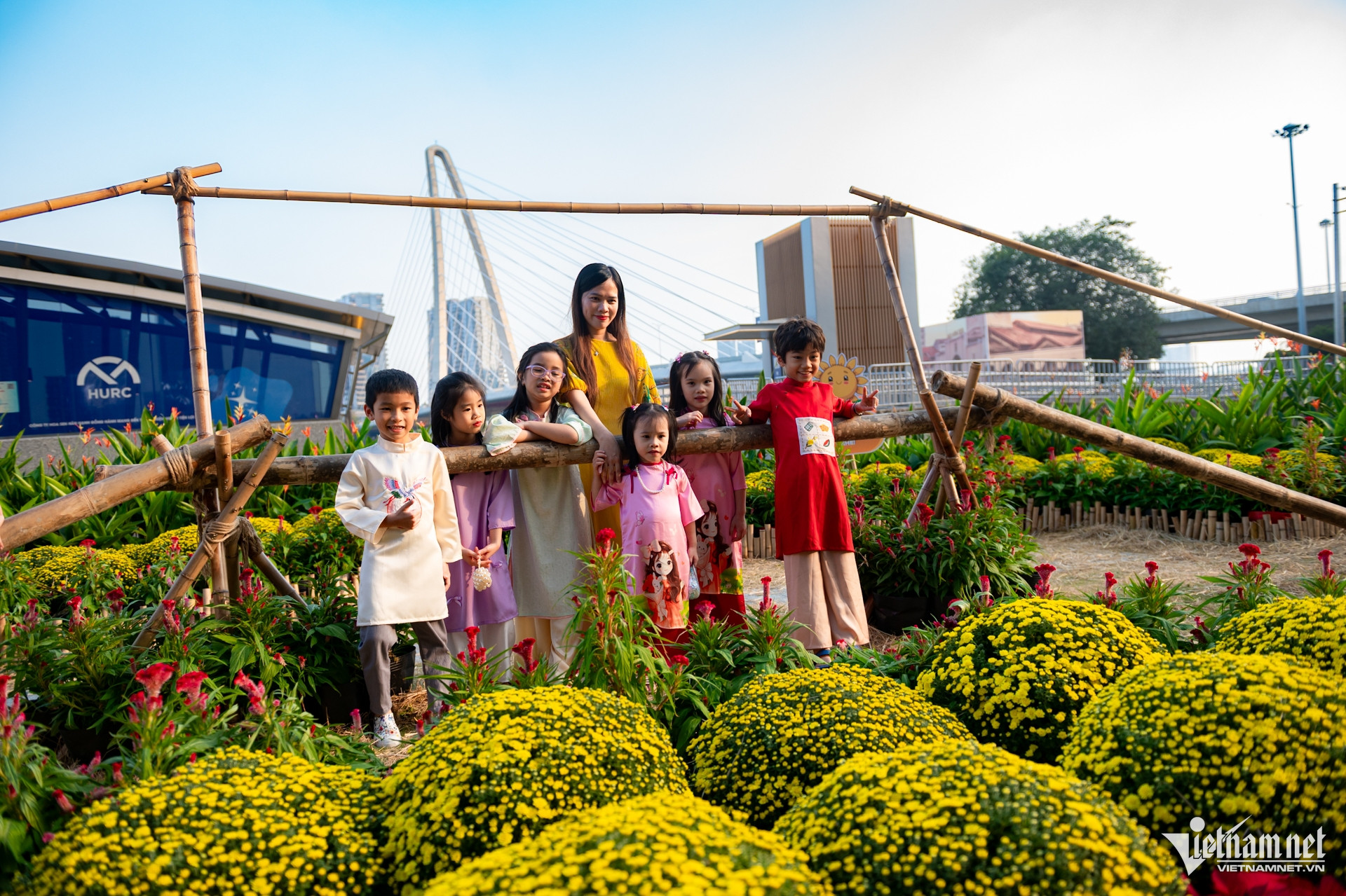 Chị Thảo Vy (phường Thủ Đức) cho biết, chị rất ấn tượng với các tiểu cảnh mang phong cách làng quê Nam Bộ như cầu tre, bãi rơm, nón lá. Mọi thứ được bố trí đan xen trong khuôn viên, tạo điểm nhấn giữa đô thị hiện đại.