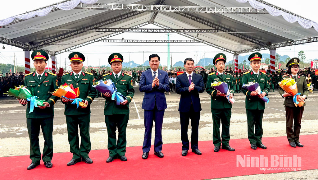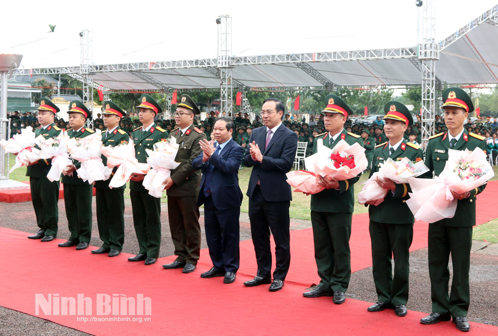 Tại buổi lễ, các đồng chí lãnh đạo tỉnh cùng cấp ủy, chính quyền địa phương đã tặng hoa chúc mừng các tân binh, đơn vị nhận quân và động viên các tân binh nỗ lực rèn luyện, học hỏi, hoàn thành tốt nhiệm vụ được giao.