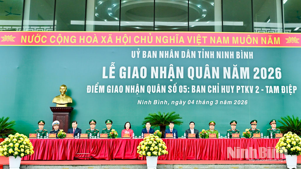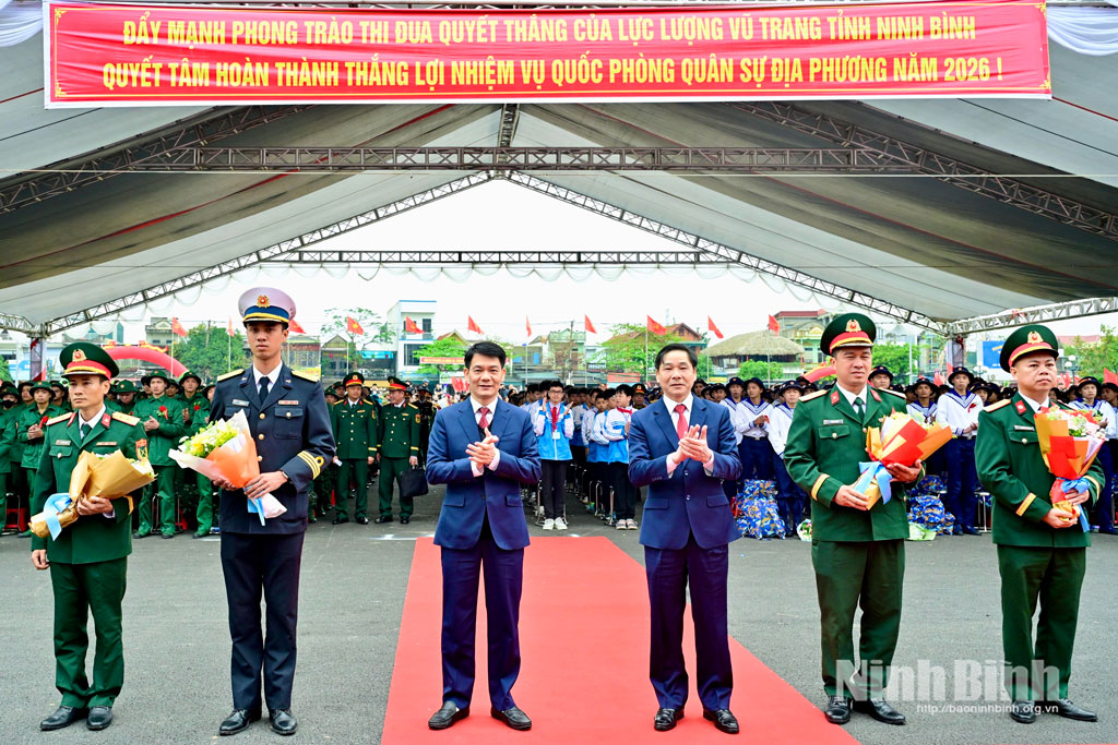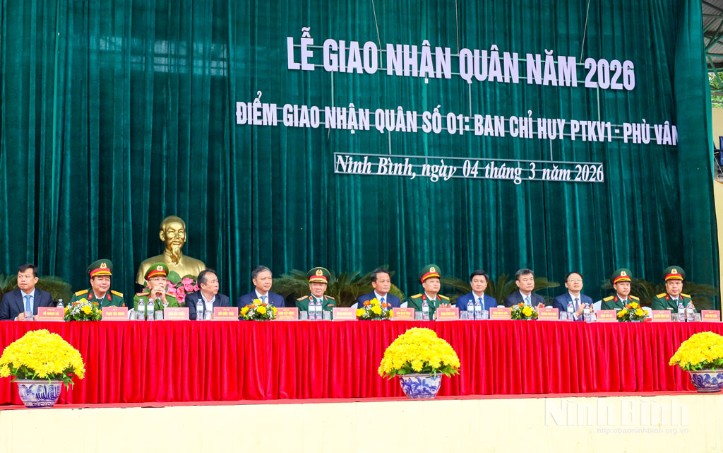 Lễ giao, nhận quân năm 2026 tại điểm giao, nhận quân số 6 tiễn 537 người con ưu tú của 14 xã: Gia Viễn, Đại Hoàng, Gia Hưng, Gia Phong, Gia Vân, Gia Trấn, Nho Quan, Gia Lâm, Gia Tường, Phú Sơn, Cúc Phương, Phú Long, Thanh Sơn, Quỳnh Lưu lên đường thực hiện nghĩa vụ.