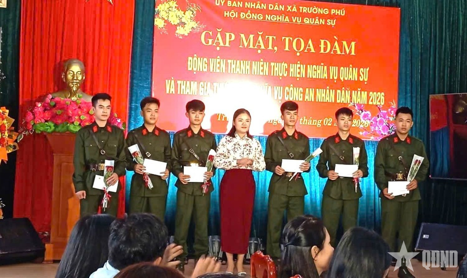 Quang cảnh Lễ giao nhận quân năm 2026 xã Trường Phú, tỉnh Quảng Trị sáng 5-3.