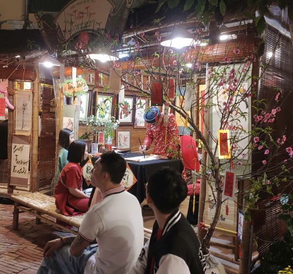 Nhiều gian thư pháp trở thành điểm hẹn của những người thân quen dịp đầu xuân.