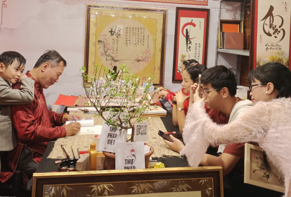 Có những khoảng thời gian, phong tục này mai một trong đời sống, ông vô cùng tiếc. Khi Văn Miếu – Quốc Tử Giám tổ chức Hội chữ Xuân, hơn chục năm nay, năm nào ông cũng đến tham dự, nhưng chỉ dừng ở giao lưu, học hỏi. Năm nay, con cháu, gia đình, bạn bè động viên nên ông mới mạnh dạn tham gia. Gian thư pháp không chỉ là nơi xin – cho chữ mà còn là điểm để gặp gỡ người thân, bạn bè…