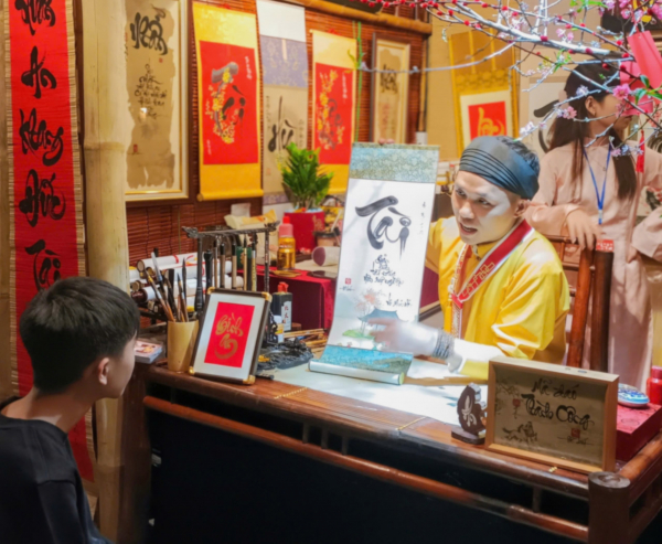Nhiều du khách cũng tò mò ghé thăm các gian thư pháp.