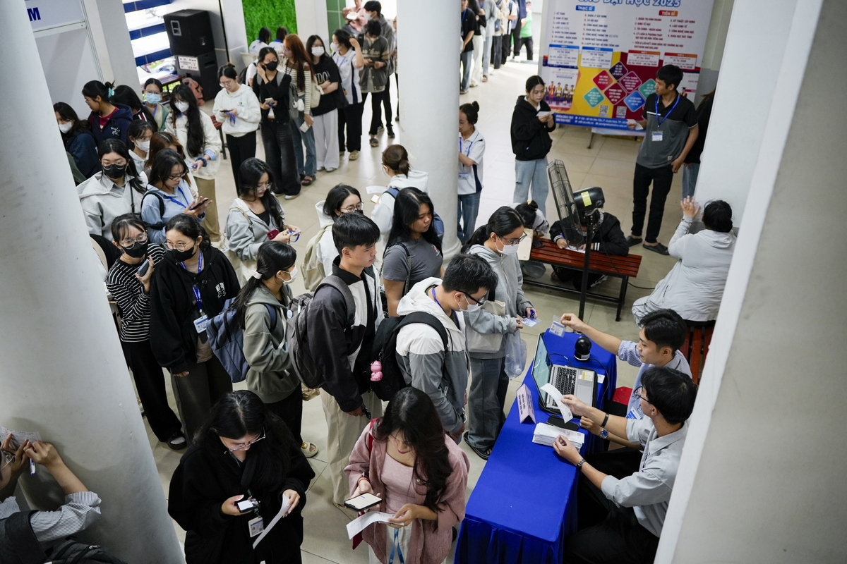 Mới đây, ngày hội việc làm của trường đã thu hút 116 doanh nghiệp và hơn 1.300 sinh viên ứng tuyển. Tất cả đơn vị tham gia đều phải qua thẩm định pháp lý minh bạch để bảo vệ sinh viên.