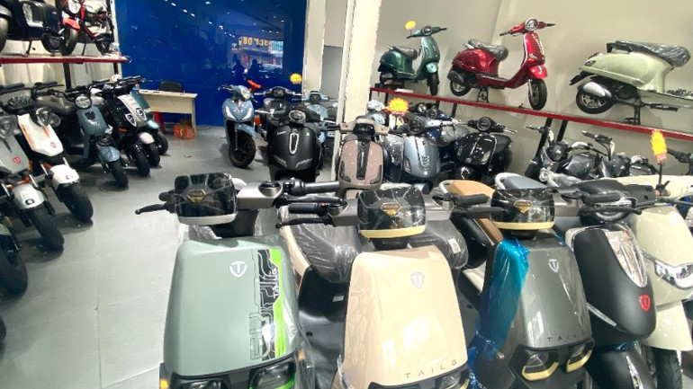 Một cửa hàng bán xe máy điện có doanh thu cao do nhu cầu người đi phương tiện điện ngày càng cao. (Ảnh: QUÝ HIỀN)