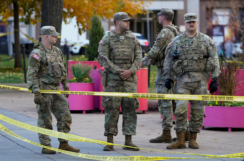 Các thành viên của Lực lượng Vệ binh Quốc gia đứng trong khu vực được phong tỏa sau khi 2 thành viên bị bắn gần Nhà Trắng ở Washington, D.C., Mỹ ngày 26/11. Ảnh: Reuters.