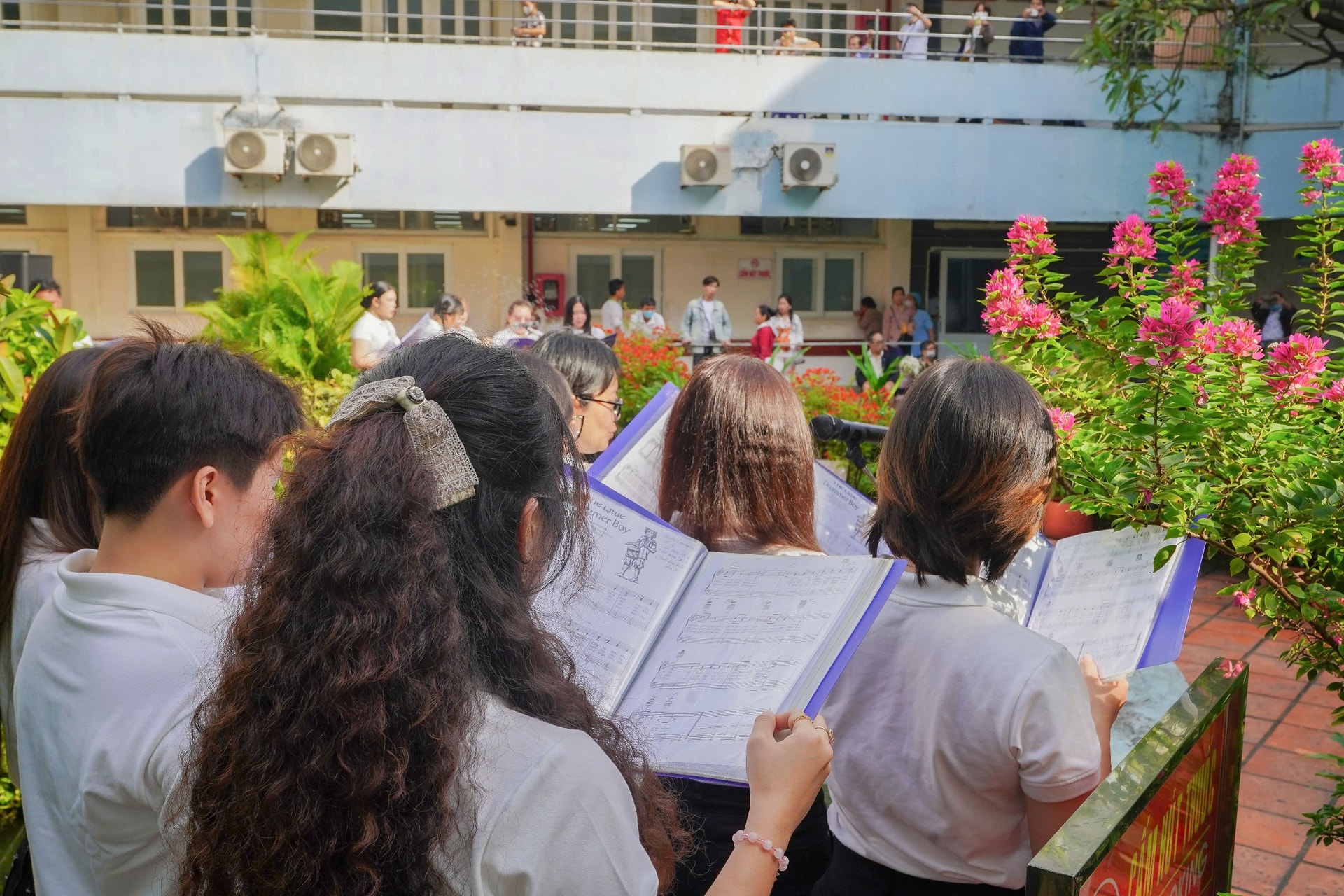 Sau khi biểu diễn tại sân bệnh viện, dàn hợp xướng tiếp tục đến Khoa Lão, mang âm nhạc ấm áp đến các bệnh nhân lớn tuổi.
