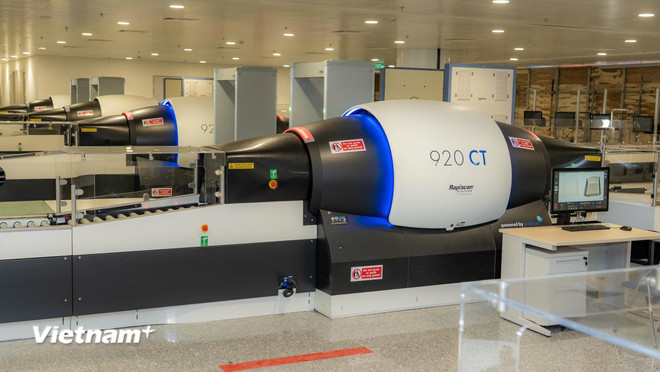Máy soi chiếu 3D thế hệ mới tích hợp công nghệ tự động trả khay và hình ảnh 3D đa chiều, cho phép soi chiếu chính xác mà không cần tháo dỡ laptop hay chất lỏng. (Ảnh: Việt Hùng/Vietnam+)
