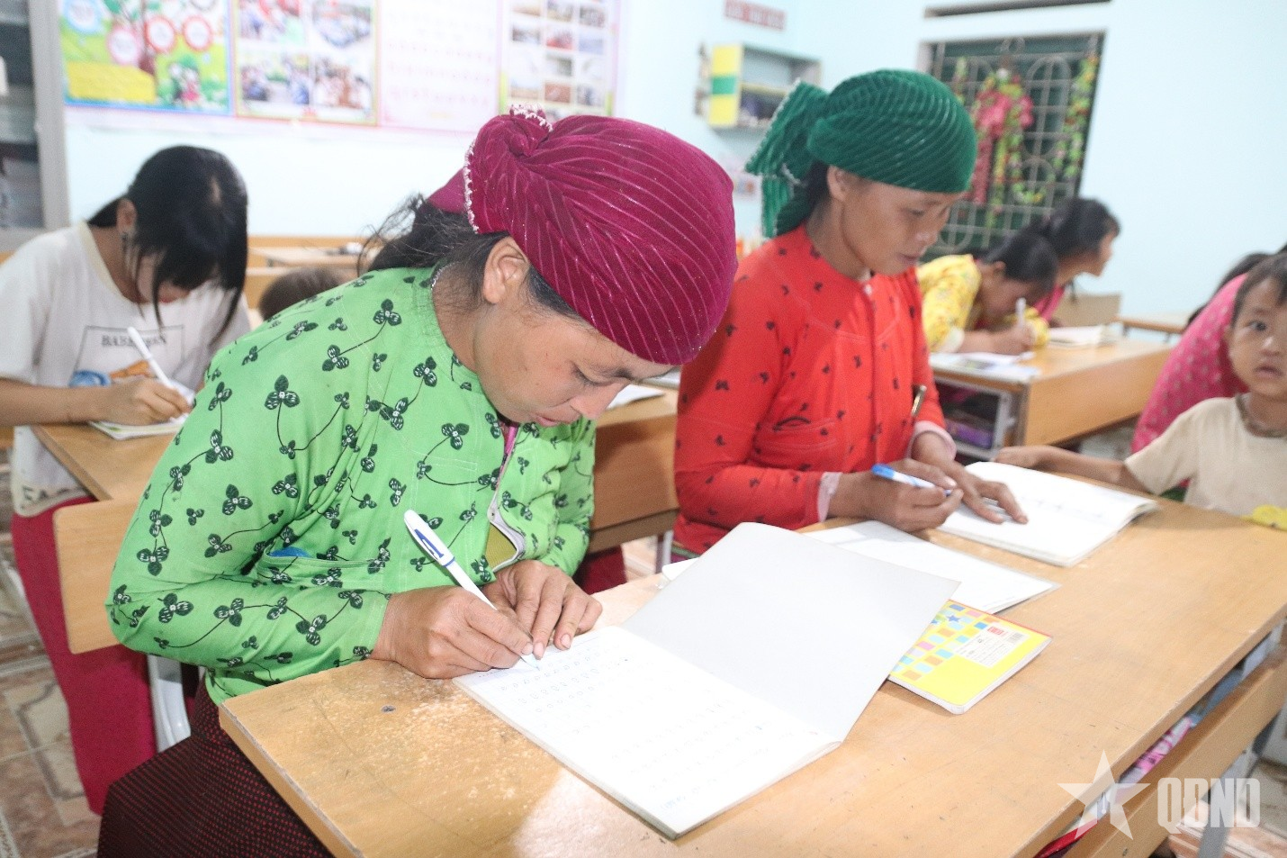 Công tác này càng được tiếp sức mạnh mẽ khi Bộ Chính trị ban hành Chỉ thị số 29-CT/TW ngày 5-1-2024 về phổ cập giáo dục, giáo dục bắt buộc và xóa mù chữ cho người lớn. Cụ thể hóa Chỉ thị, từ năm 2024 đến nay, Tuyên Quang đã mở hơn 100 lớp xóa mù chữ cho gần 2.000 học viên. Tại Sơn Vĩ, Bộ đội Biên phòng duy trì 10 lớp học ở các thôn biên giới; tại Hoàng Su Phì, địa phương đã hoàn thành xóa mù chữ cho phụ nữ dưới 60 tuổi và tổ chức các nhóm “con dạy mẹ, cháu dạy bà” để chủ động ngăn tái mù.