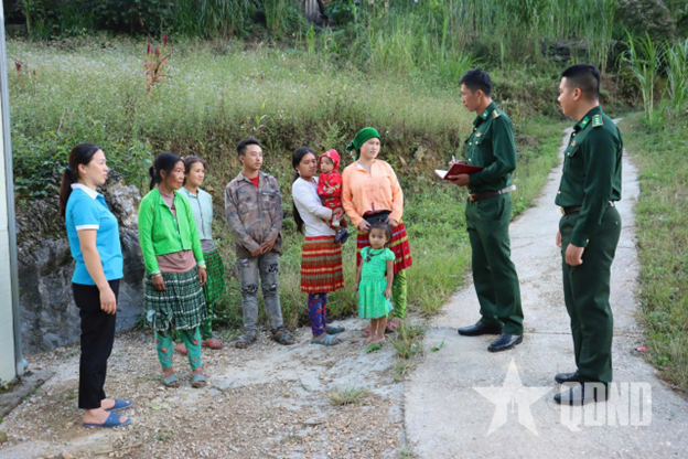 Cán bộ Đồn Biên phòng Sơn Vĩ đồng hành cùng dân bản, tuyên truyền nâng cao ý thức bảo vệ đường biên, mốc giới Tổ quốc.
