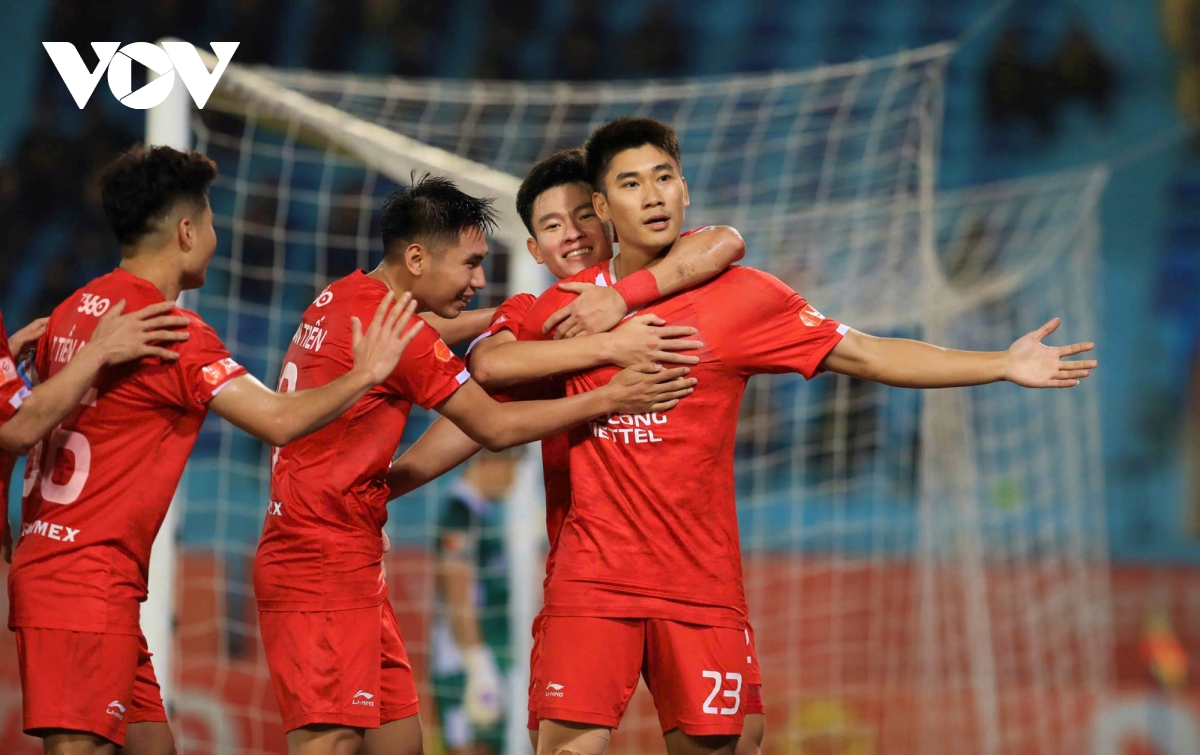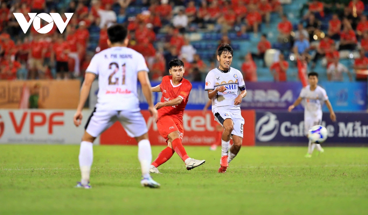 Tiếp đà hưng phấn, đội bóng áo lính có bàn thắng ở phút 80 nhờ công của Nhâm Mạnh Dũng.