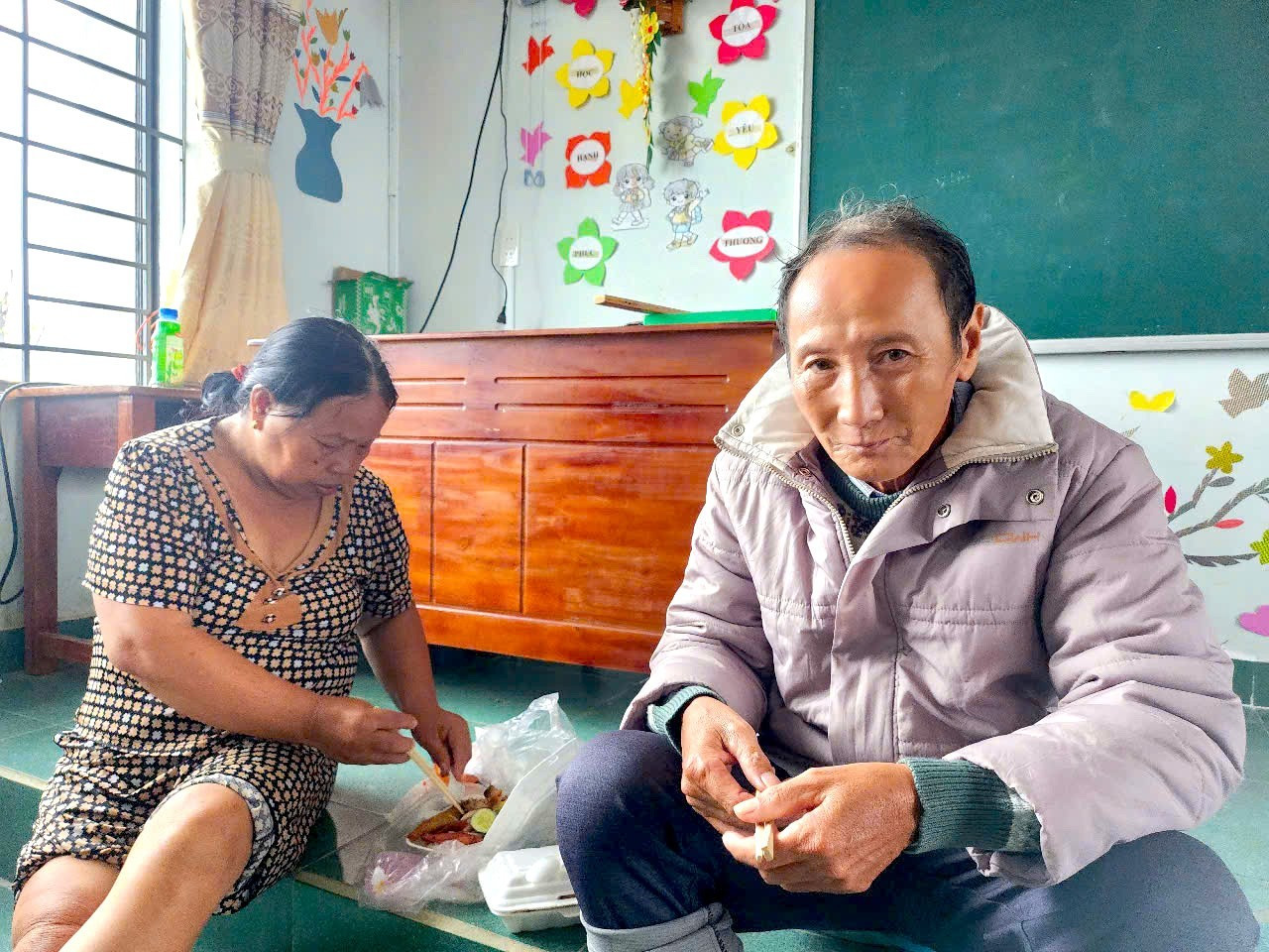 Ông Trí và bà Hoa trú tránh tại trường học. Ảnh: Tiền Lê