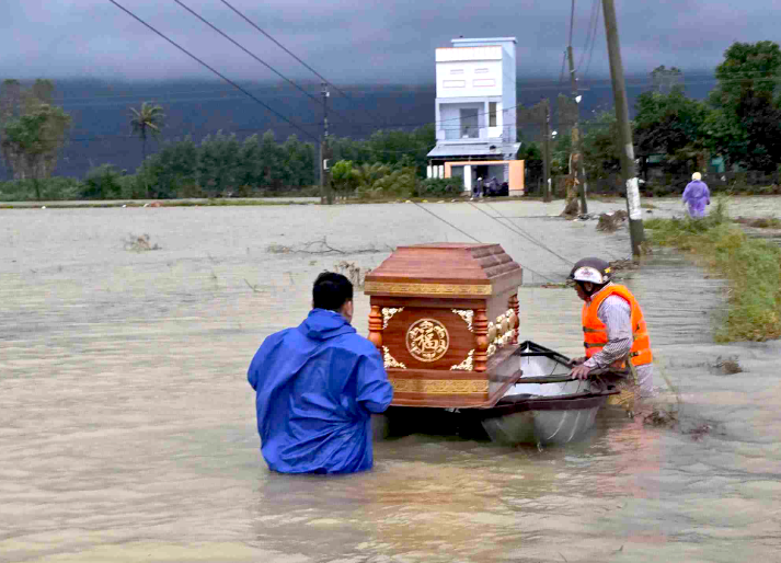 Trong căn nhà ngập bùn đất, bà Lê Thị Hằng (44 tuổi) khóc nghẹn bên quan tài của bà Lê Thị Cúc (70 tuổi, mẹ ruột). Bà Hằng xúc động kể, mẹ bị tai biến, sống một mình khi hai con gái ở xa. Giữa trận lũ lên nhanh, bà không may bị cuốn trôi. Bà Hằng nói, đợt bão trước bà từng đưa mẹ về tránh trú, nhưng đến đợt lũ này, bà Cúc nhất quyết ở lại dọn dẹp nhà cửa. Mẹ bà Hằng bị tai biến nhưng nhưng vẫn tự nấu cơm, tự chăm sóc được. Bà Hằng và em gái vẫn hay về thăm nom, phụng dưỡng.