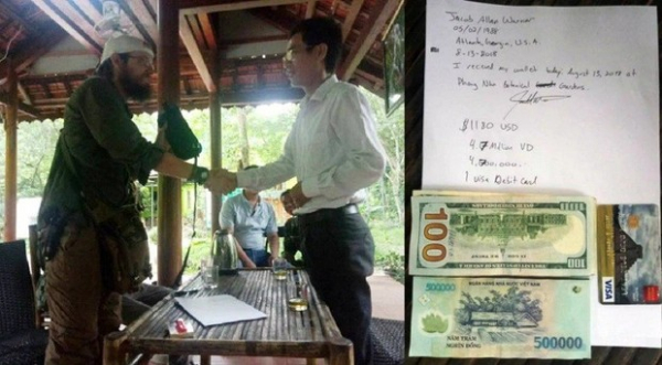Du khách người Mỹ ông Jacob Allan Warnor nhận lại tài sản cá nhân khi ông tham quan du lịch ở Phong Nha - Kẻ Bàng không may đánh rơi.