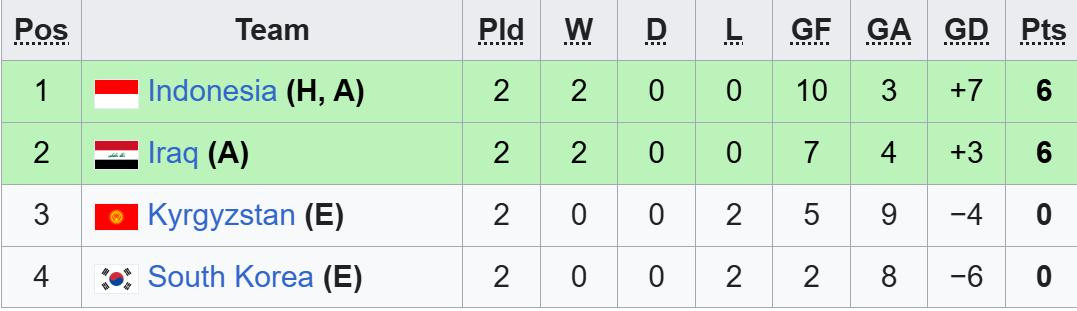 Ở trận đấu trước đó, Iraq đã dập tắt hy vọng đi tiếp của Hàn Quốc bằng chiến thắng kịch tính 3-2. Kết quả này giúp Iraq cùng Indonesia trở thành hai đại diện của bảng A lọt vào vòng knock-out.