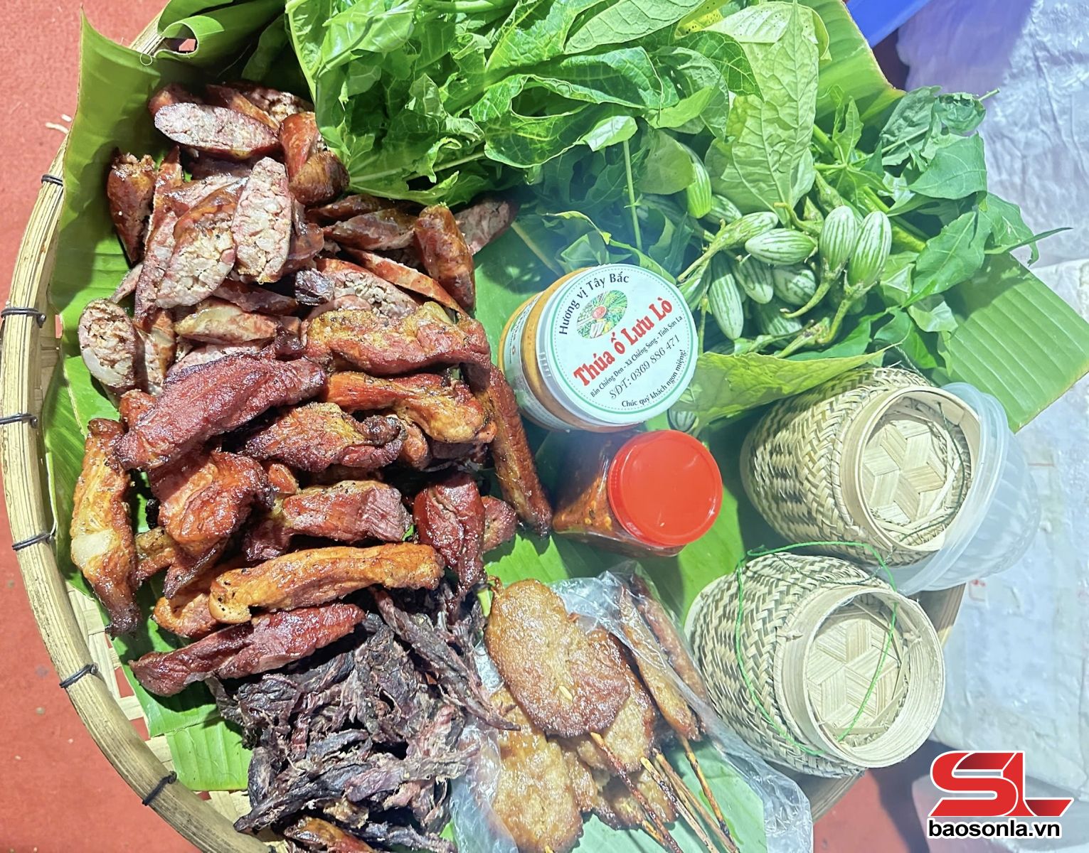 Tham gia hội chợ lần này, Hợp tác xã Kim Tiền Phát có 2 gian hàng, trưng bày, giới thiệu về đặc sản truyền thống của Sơn La. Bà Lừ Thị Tiền, Giám đốc HTX, chia sẻ: Nhằm giới thiệu tới du khách thập phương về đặc sản của Sơn La, chúng tôi giới thiệu với thực khách, các món ăn như: thịt trâu gác bếp, thịt lợn gác bếp; lạp sườn gác bếp; chẩm chéo… với mong muốn giới thiệu văn hóa ẩm thực của Sơn La nói chung và của đồng bào dân tộc Thái Sơn La nói riêng. Tại gian hàng, du khách không chỉ được thưởng thức sản phẩm ngay tại chỗ với xôi nếp, mà còn mua về làm quà.