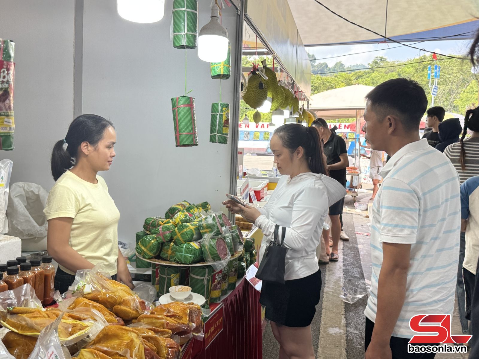 Là chủ nhà của Hội chợ xúc tiến thương mại nông sản và sản phẩm OCOP khu vực Tây Bắc - Sơn La năm 2025, các doanh nghiệp, hợp tác xã và địa phương trong tỉnh Sơn La đã mang đến những sản phẩm đặc trưng, mang đậm hương vị núi rừng, như: Thịt hun khói, thị gác bếp; chẩm chéo, thúa ố, bánh dầy, cùng nhiều sản phẩm hoa quả tươi ngon đang vào vụ thu hoạch. Dù đã rất quen thuộc với người dân địa phương, nhưng những sản phẩm này vẫn thu hút đông đảo du khách và nhân dân đến tham quan, thưởng thức và mua về làm quà.