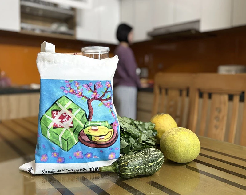 Nhiều chị em lựa chọn túi vải đi chợ thay cho việc dùng túi nilon.