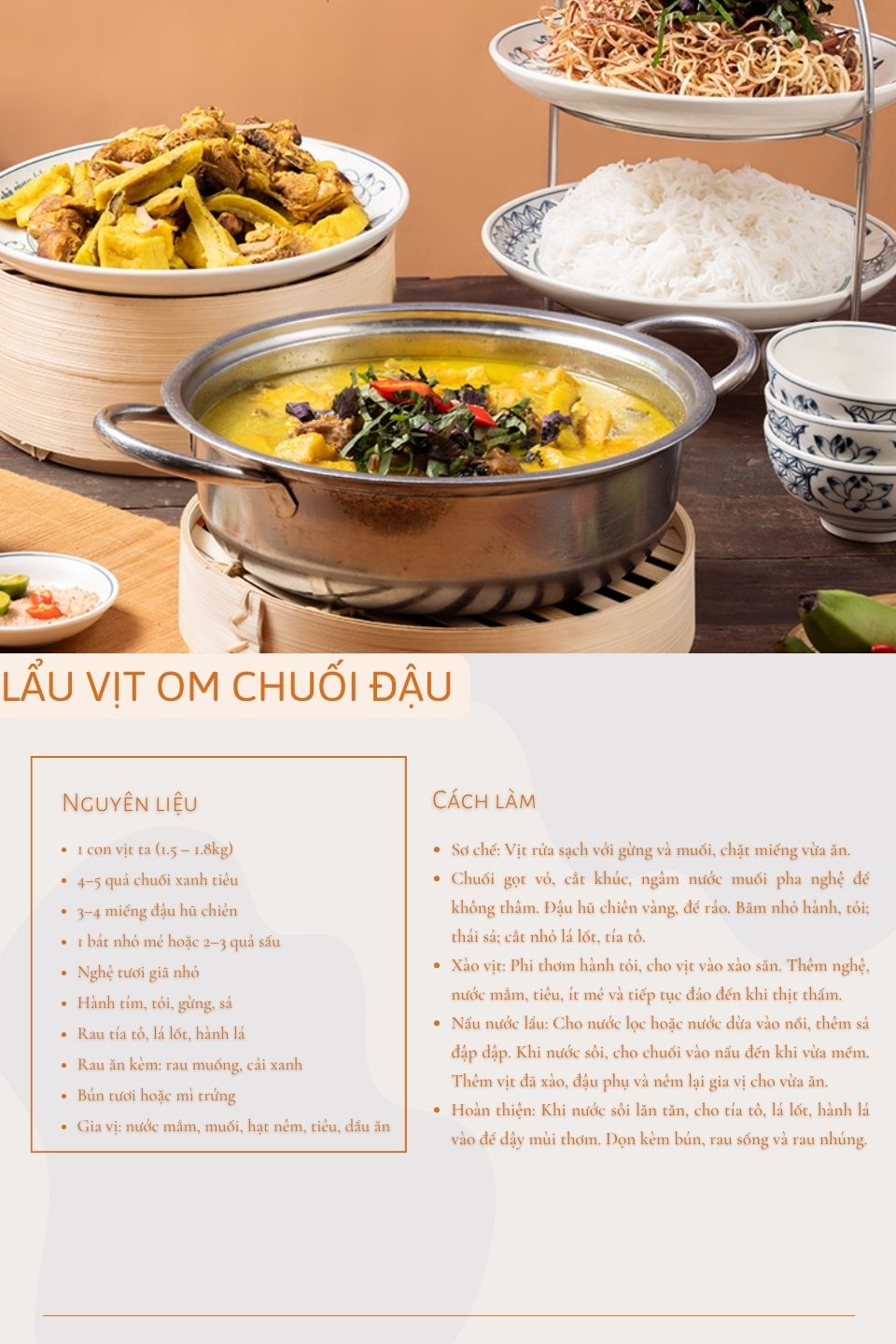 Không quá cầu kỳ nhưng lại phong phú từ nguyên liệu đến hương vị, lẩu vịt om chuối đậu là món ăn mà chỉ cần nếm thử một lần, thực khách sẽ nhớ ngay cảm giác ấm cúng và thân thuộc của bữa cơm quê nhà.