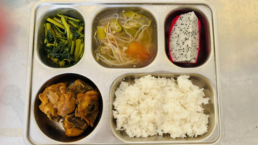 Suất ăn trưa của học sinh Trường Tiểu học Tân Quy (TPHCM) ngày 21/1. Ảnh: Trường Tiểu học Tân Quy.