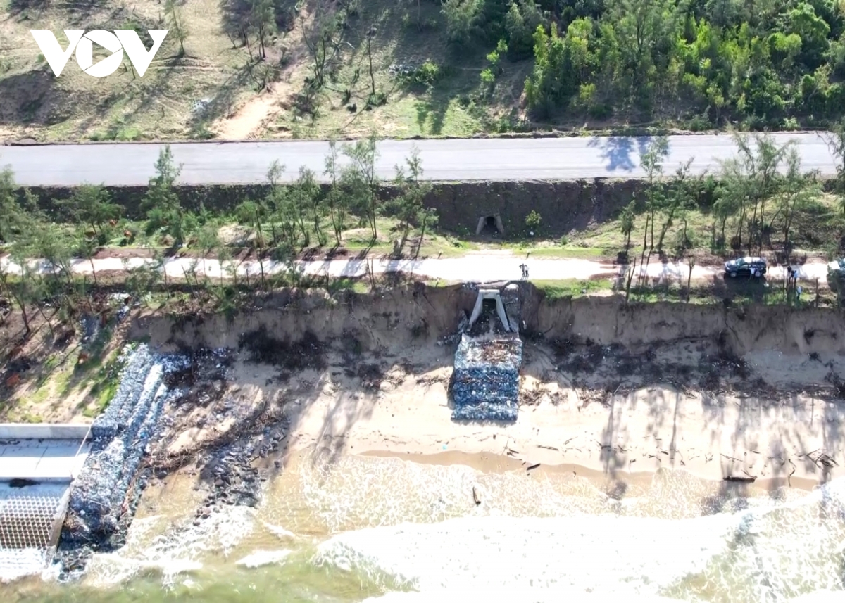 Ông Hoàng Văn Hải, ở thôn Thanh Xuân, xã Bắc Trạch, tỉnh Quảng Trị cho biết, người dân và chính quyền địa phương chỉ có thể khắc phục bằng cách đổ đá hộc tạm gia cố, hạn chế sạt lở. Thế nhưng, giải pháp này không thể chống chọi lâu dài trước sóng biển và triều cường mỗi khi bão đến.