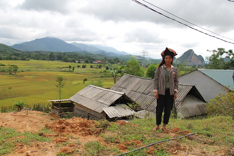 Ngôi nhà gia đình chị Quàng Thị Tiện, thôn Hai Huân dưới khu vực sạt lở.