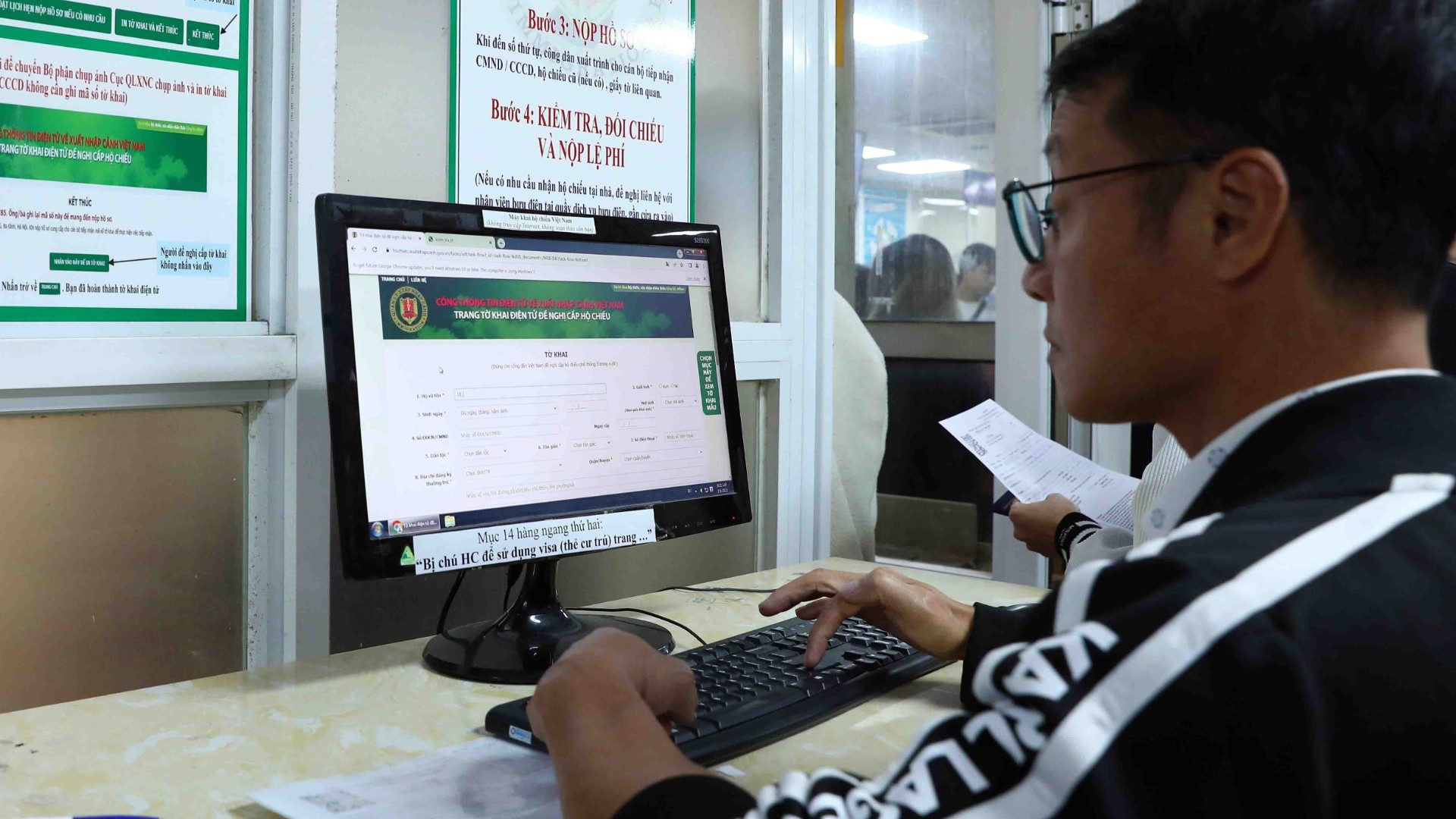 Tiếp nhận hồ sơ đăng ký đề nghị cấp hộ chiếu phổ thông của công dân trên cổng dịch vụ công trực tuyến. (Ảnh: TTXVN)