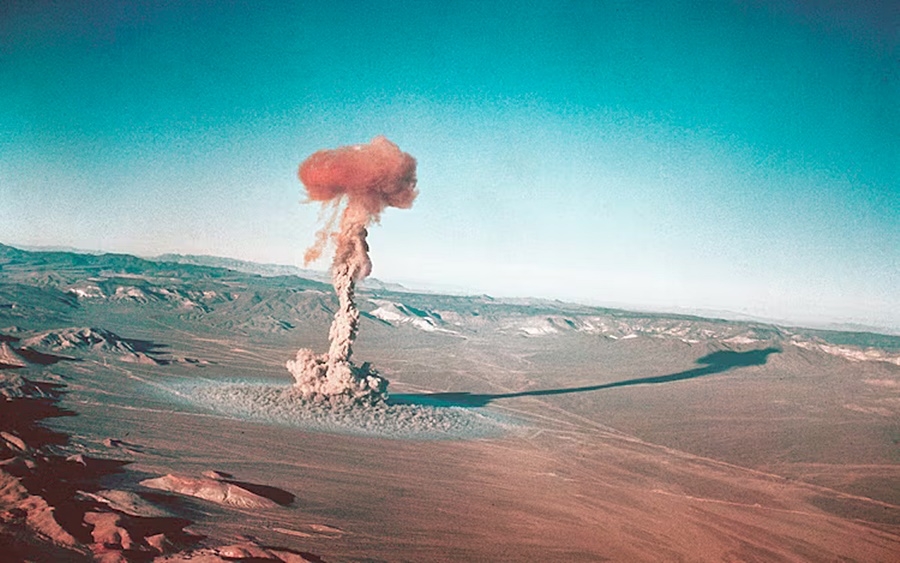 Một vụ thử hạt nhân ở bãi thử Nevada năm 1955. Ảnh: Ủy ban Năng lượng nguyên tử Mỹ.