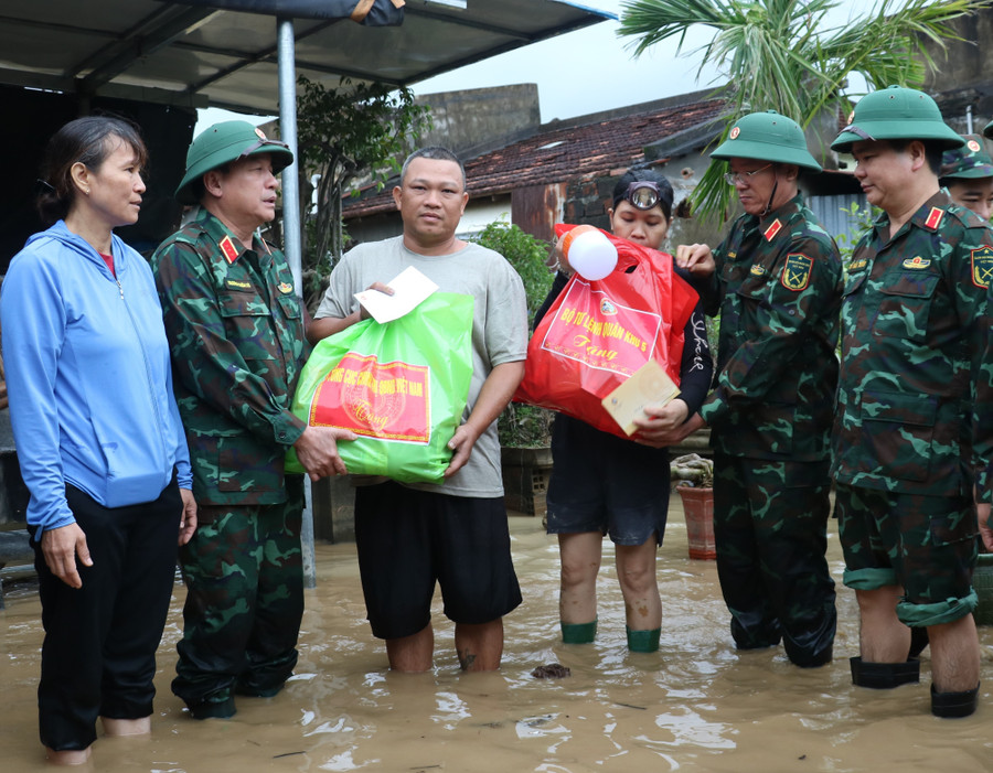 Ngay từ lúc thành lập, lực lượng chức năng tiếp nhận hàng chục tấn lương thực, thực phẩm, nước uống, đồ dùng sinh hoạt, thuốc men… Sau khi thống kê chi tiết, bộ đội tỏa đi phân phối hàng cứu trợ cho người dân tại các vùng bị ngập lụt. Những việc làm tưởng chừng như bình thường, nhỏ nhặt ấy là cả sự quan tâm, gần gũi đầy trách nhiệm của người lính đối với nhân dân.
