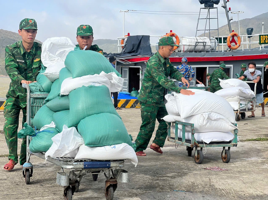 BĐBP tỉnh vận chuyển gạo để chuyển đến người dân làng chài Hải Minh (phường Quy Nhơn).