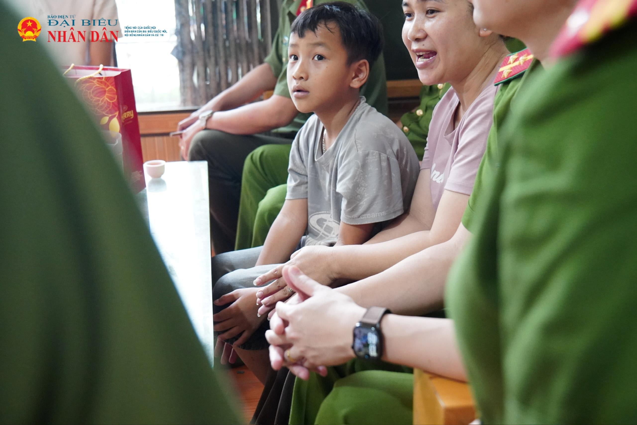 Sự ân cần của các chiến sĩ đã khiến em Hiếu nguôi ngoai phần nào nỗi đau mất đi người thân yêu nhất.
