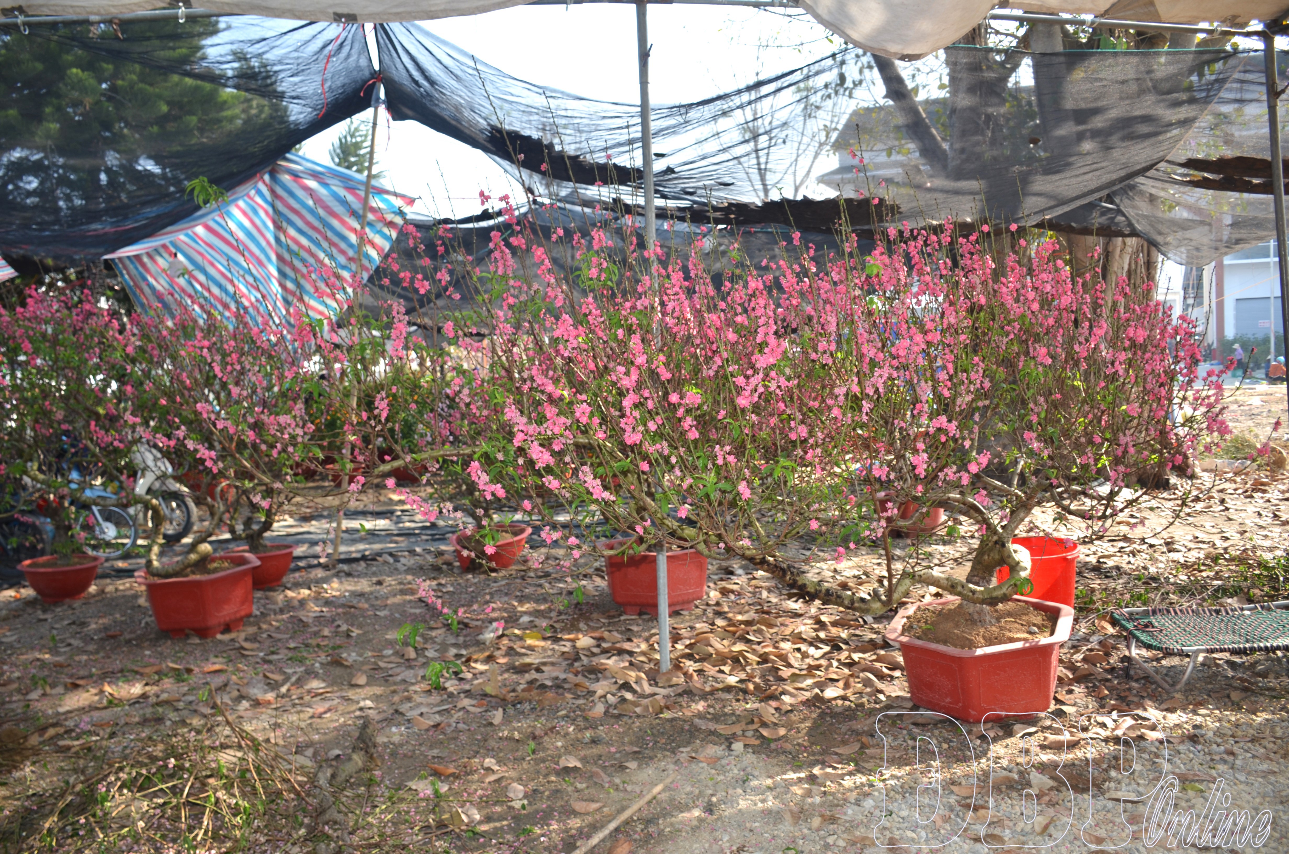 Nhiều gốc đào bung nở chưa tìm được chủ dù chuẩn bị đến thời khắc giao thừa.