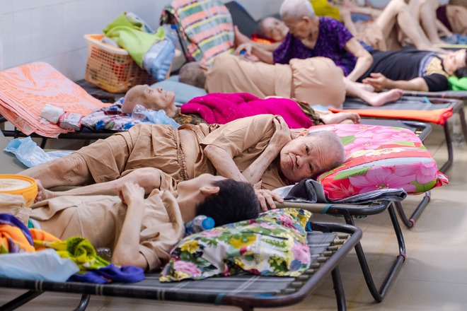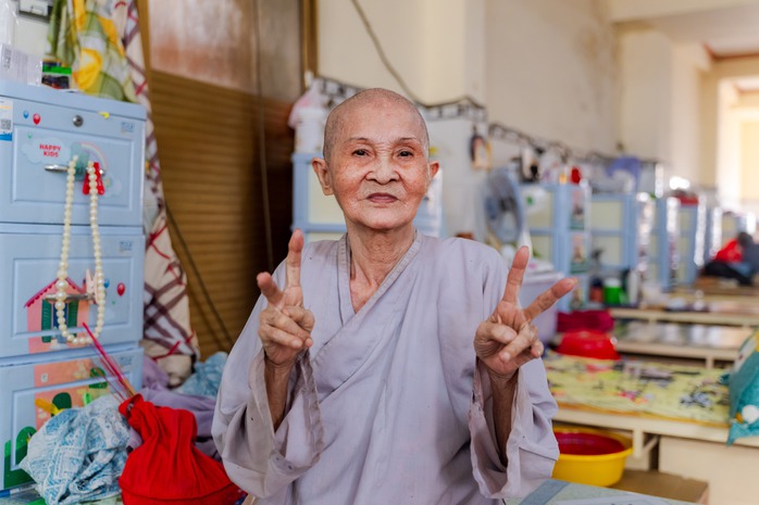 Sư cô Diệu Sơn chia sẻ: “Các cụ ở đây đều không nhà, không con cái. Khi các cụ đau yếu thì chùa sẽ chăm sóc, đưa đi bệnh viện. Còn khi các cụ qua đời, chùa lo toàn bộ ma chay, hỏa táng và thờ cốt của các cụ tại chùa”.