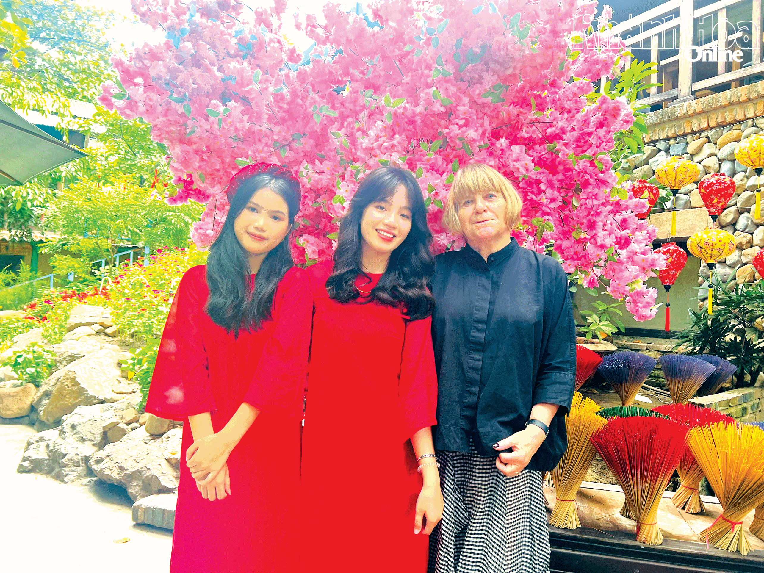 Bà Birgit Muusmann thích thú chụp ảnh ngày Tết với các thiếu nữ Nha Trang.