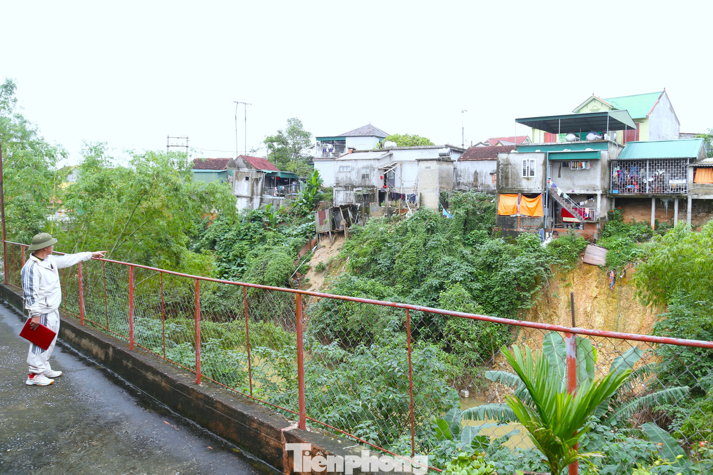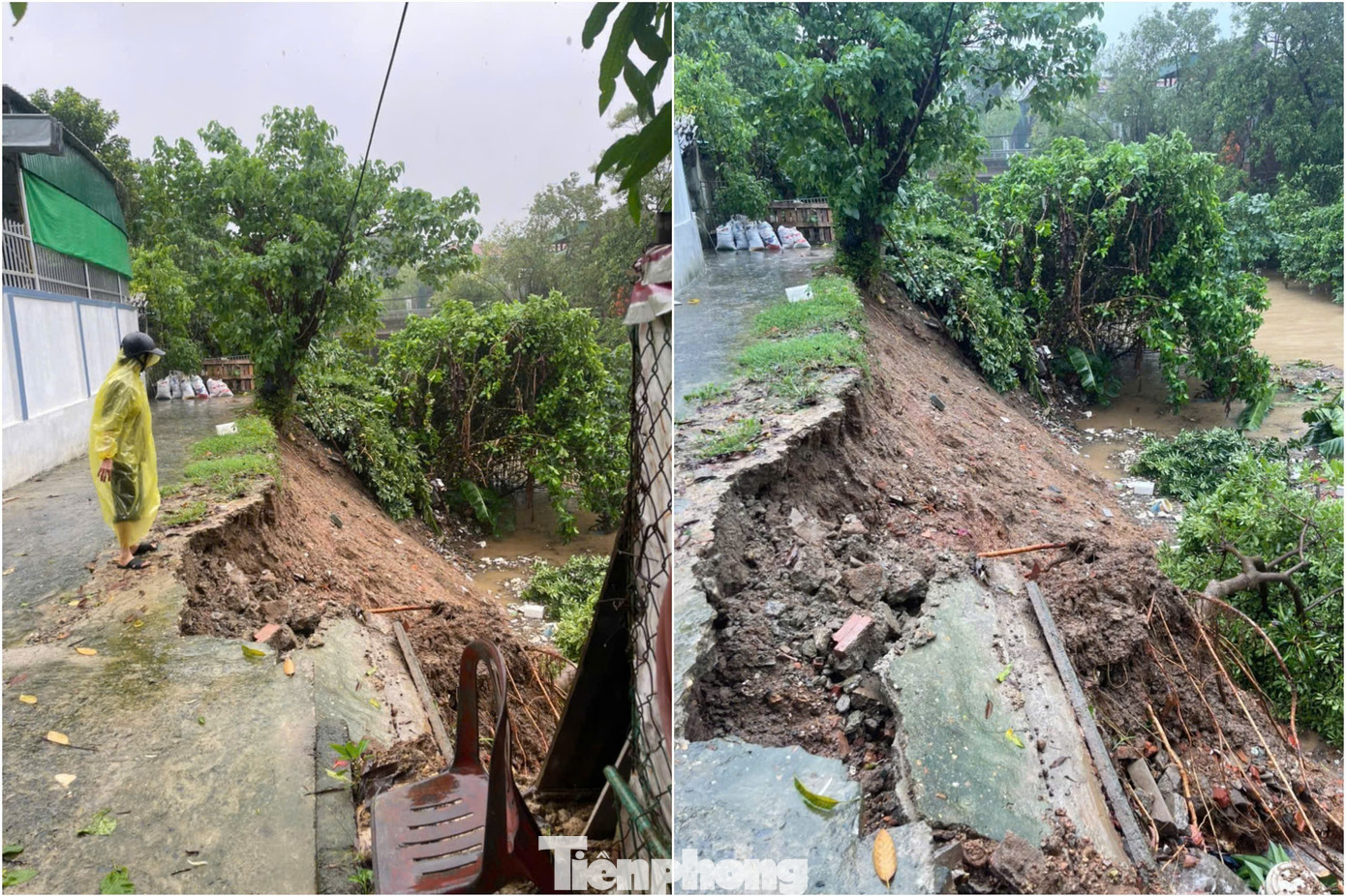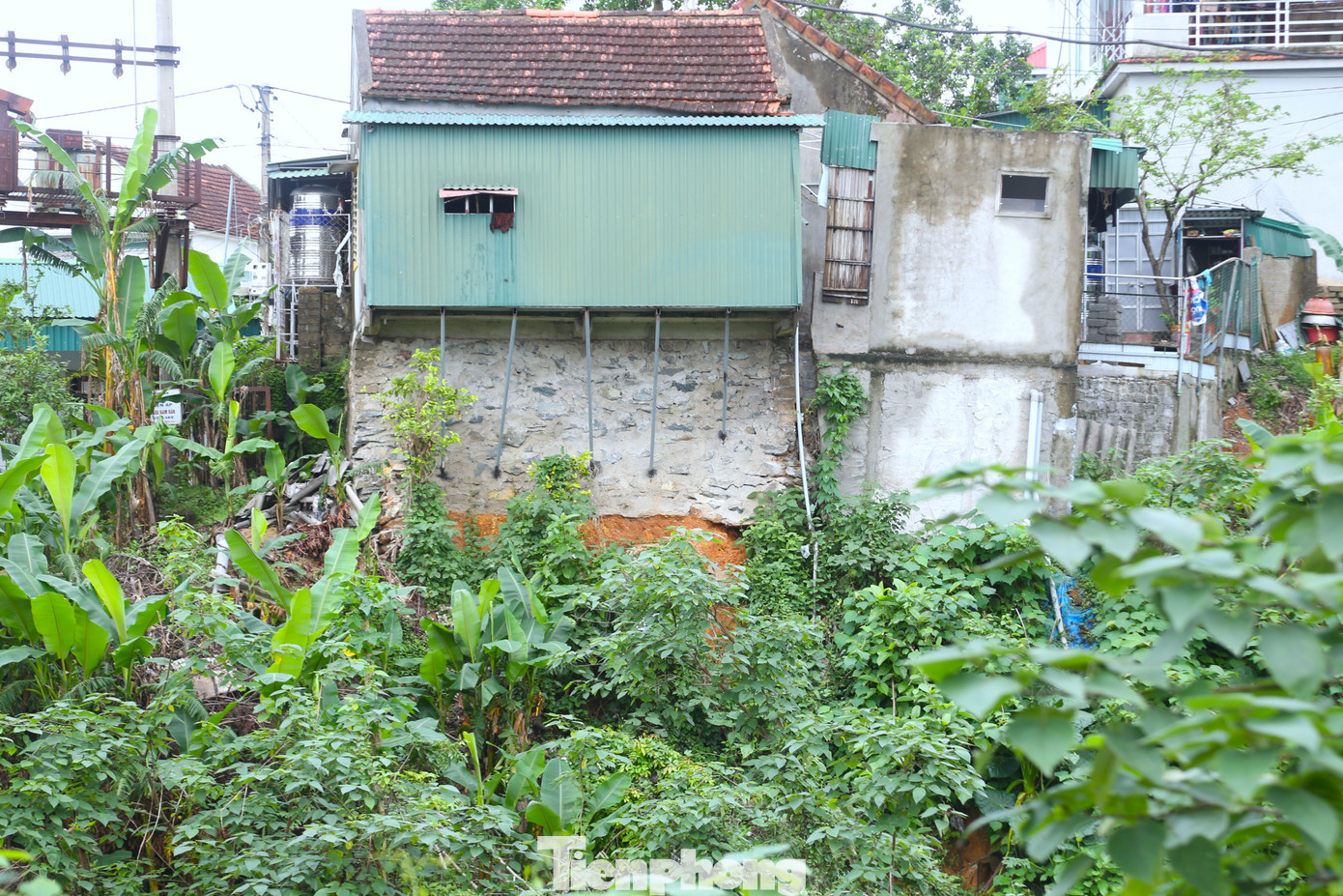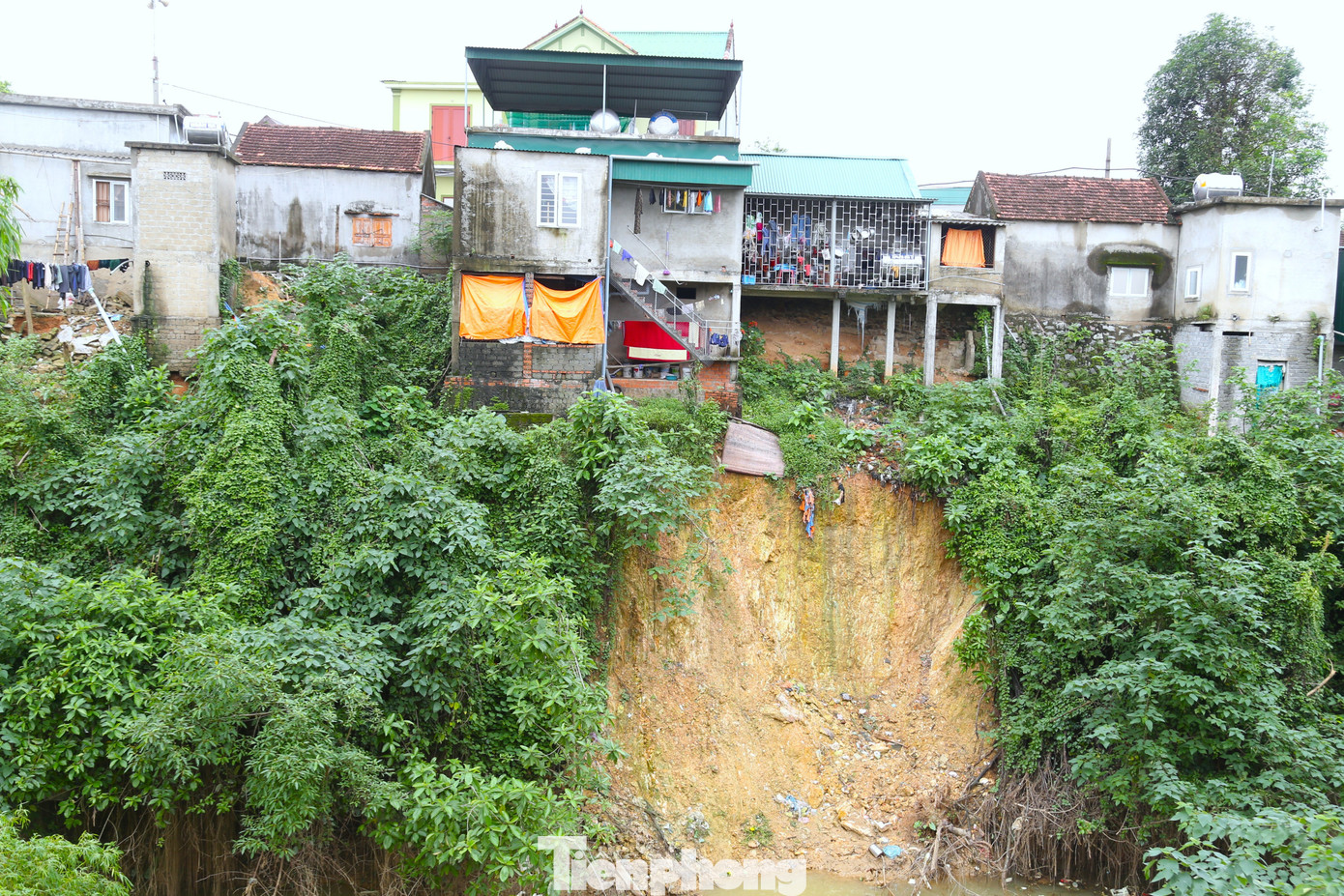 Sau cơn bão số 10, người dân khối Sa Nam, xã Vạn An, tỉnh Nghệ An từ chỗ tránh trú trở về thấy vết sạt lở đã “ăn” thêm gần nửa mét, sân nhà nứt toác, từng phần công trình phụ lần lượt sập xuống sông. Một số hộ dân đã phải dọn đi ở nhờ nhà người thân.