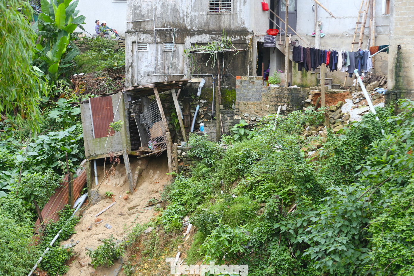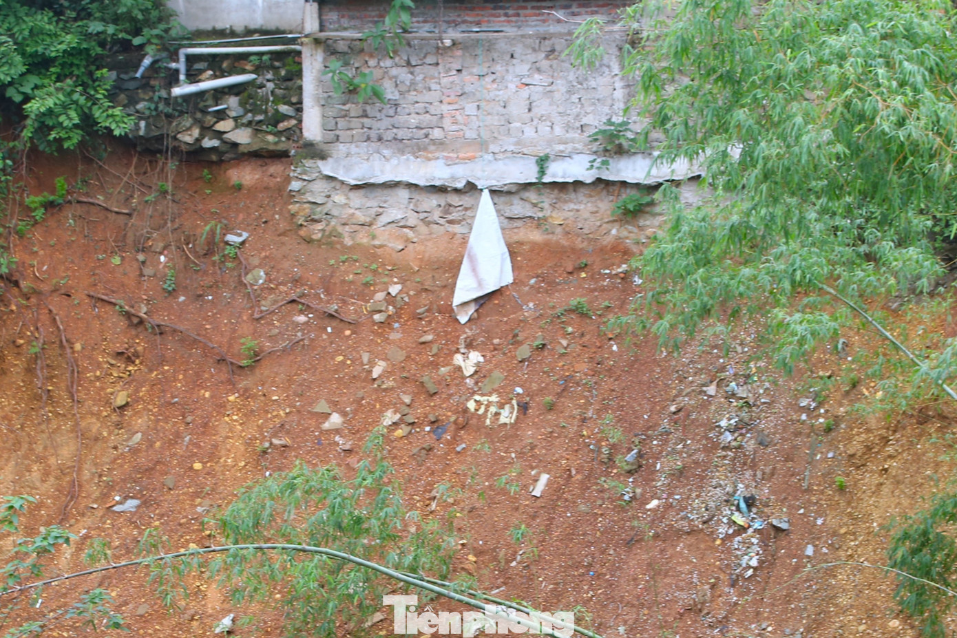 Sau những đợt mưa lớn kéo dài, đặc biệt sau cơn bão số 10, vết sạt lở đã “ăn” sâu vào phần móng nhà bà Nguyễn Thị Thành (trú khối Phan Bội Châu, xã Vạn An, tỉnh Nghệ An). Thời gian qua, bà cùng chồng và hai cháu nội phải sang nhà người thân để ở nhờ. Thi thoảng, bà lại chạy về thăm nhà một lúc rồi lại đi.