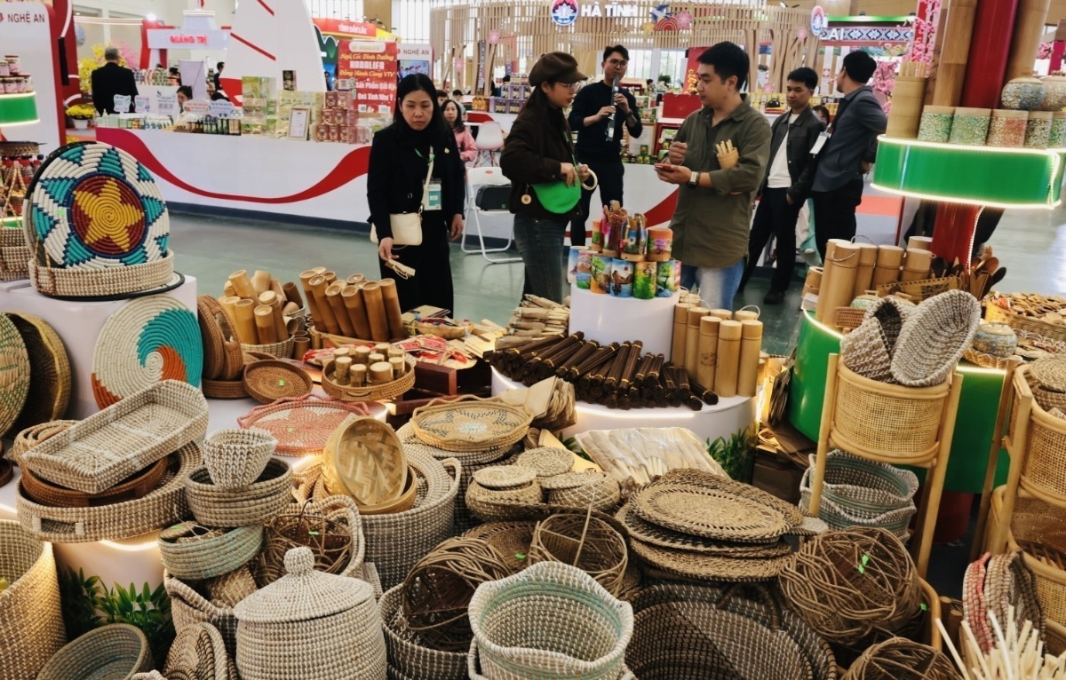 Một trong những điểm nhấn tại hội chợ là các sản phẩm thủ công từ nguyên liệu tự nhiên, thân thiện với môi trường. Các sản phẩm phục vụ nhu cầu sinh hoạt, trang trí, phản ánh xu hướng tiêu dùng xanh đang ngày càng được quan tâm, nhất là trong bối cảnh phát triển bền vững trở thành yêu cầu đặt ra đối với nhiều ngành sản xuất.