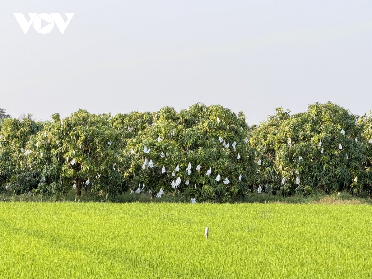 Vườn xoài được nông dân thành phố Cần Thơ áp dụng kỹ thuật bọc trái chờ thu hoạch phục vụ thị trường Tết.