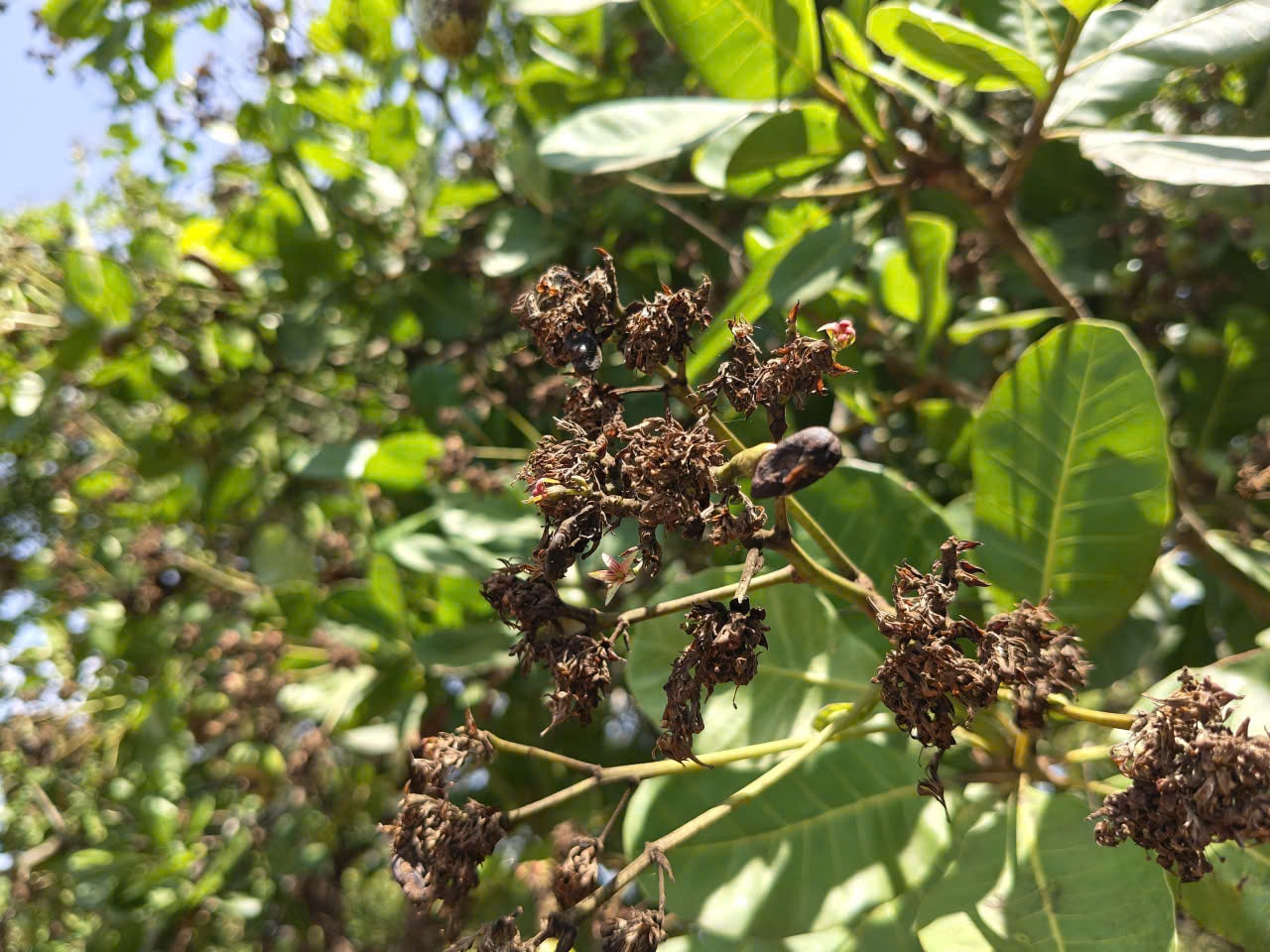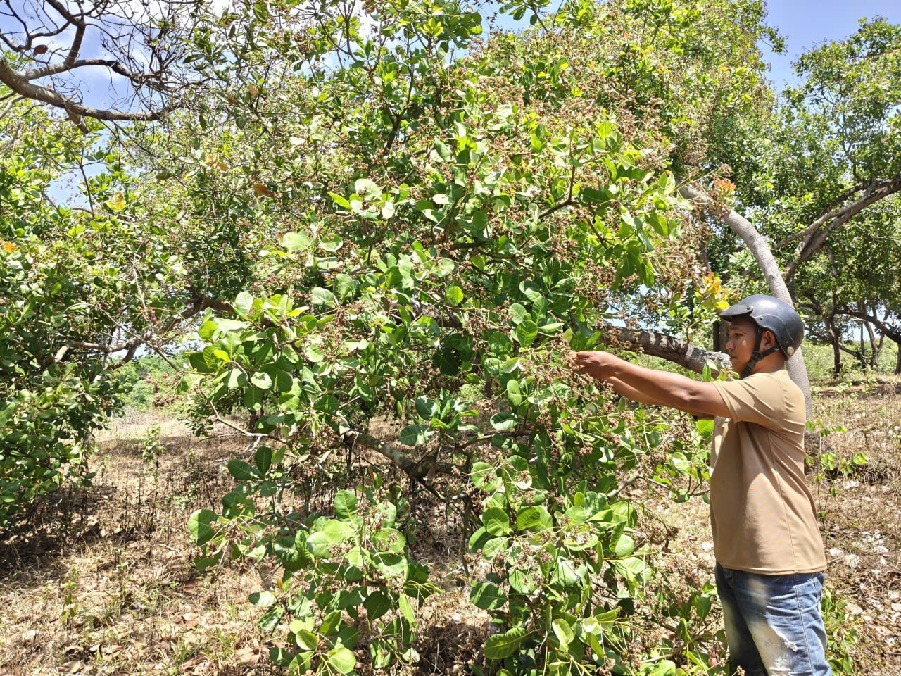 Theo ghi nhận của phóng viên Một Thế Giới, cây điều đang trong giai đoạn nhạy cảm nhất là ra hoa và đậu trái. Thời tiết diễn biến phức tạp, sáng sớm âm u se lạnh, trưa chiều nắng nóng gay gắt, xen kẽ là các đợt mưa trái mùa. Điều đó tạo điều kiện cho bọ xít muỗi, bọ trĩ, sâu đục quả và bệnh thán thư phát triển- những “sát thủ” âm thầm tiêu diệt năng suất cây điều.