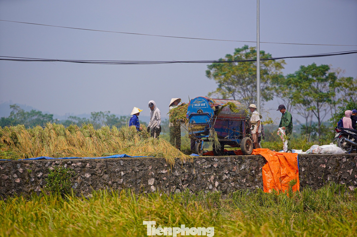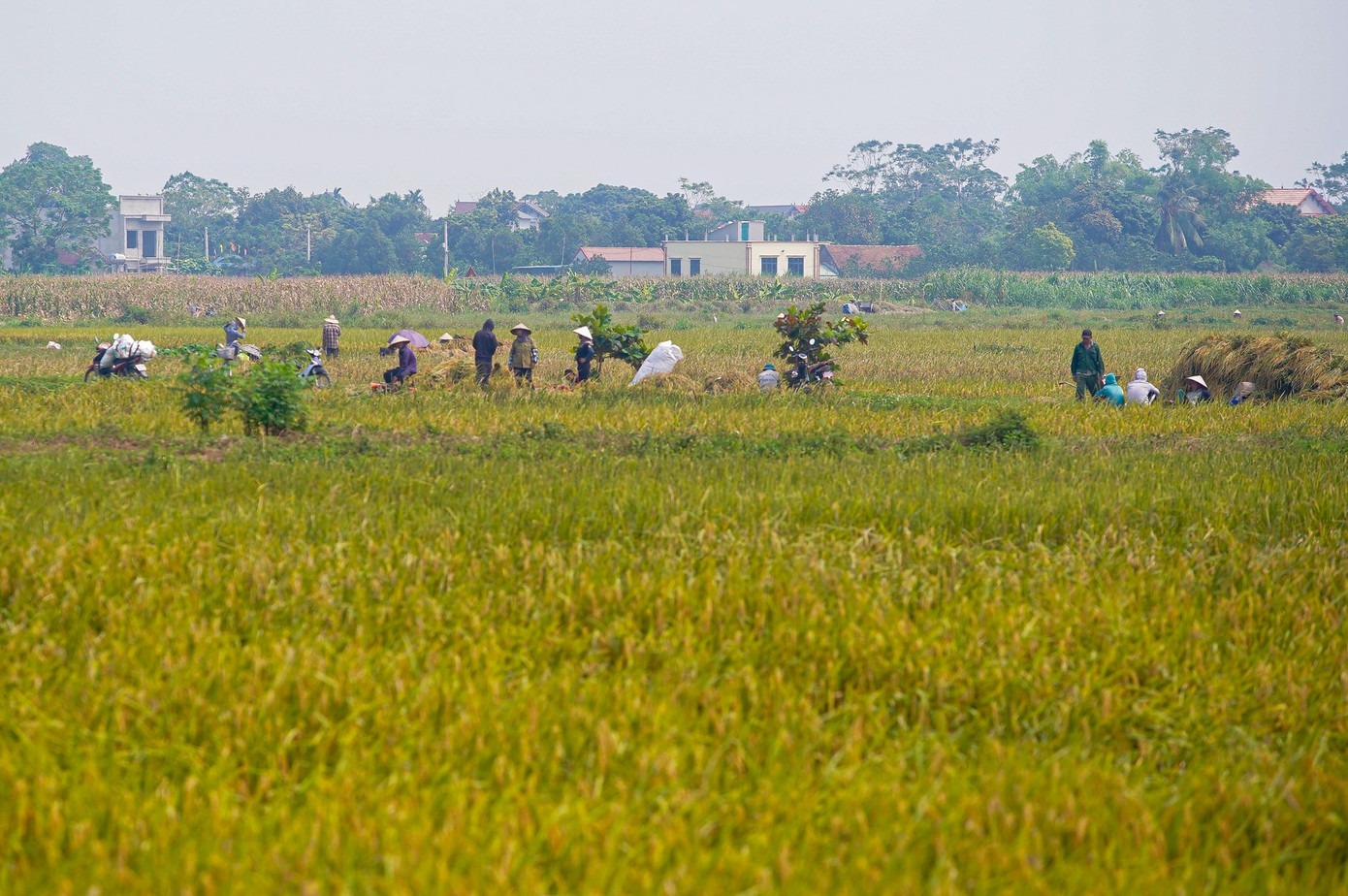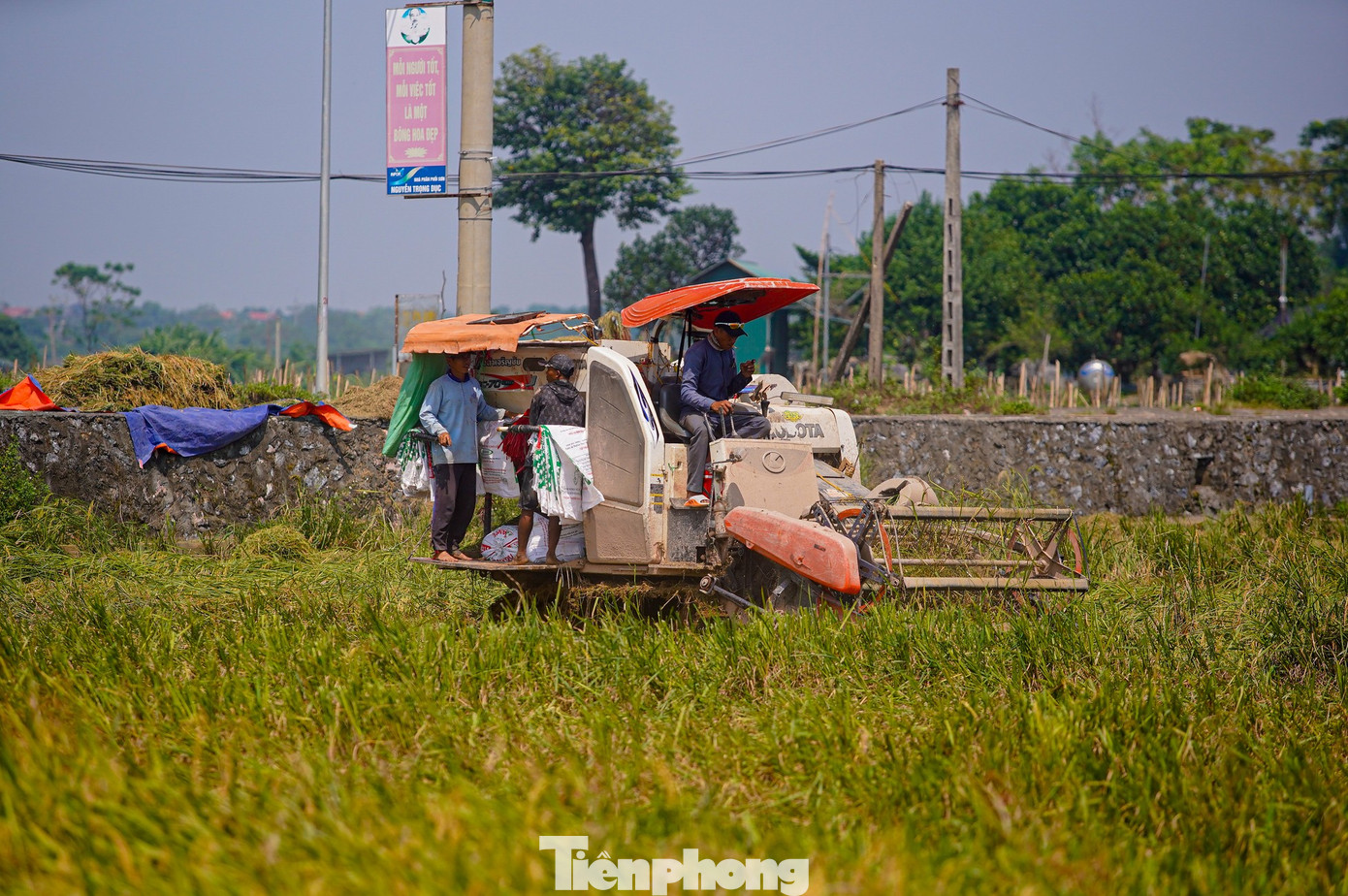 Hoạt động thu hoạch lúa diễn ra hết sức khẩn trương.